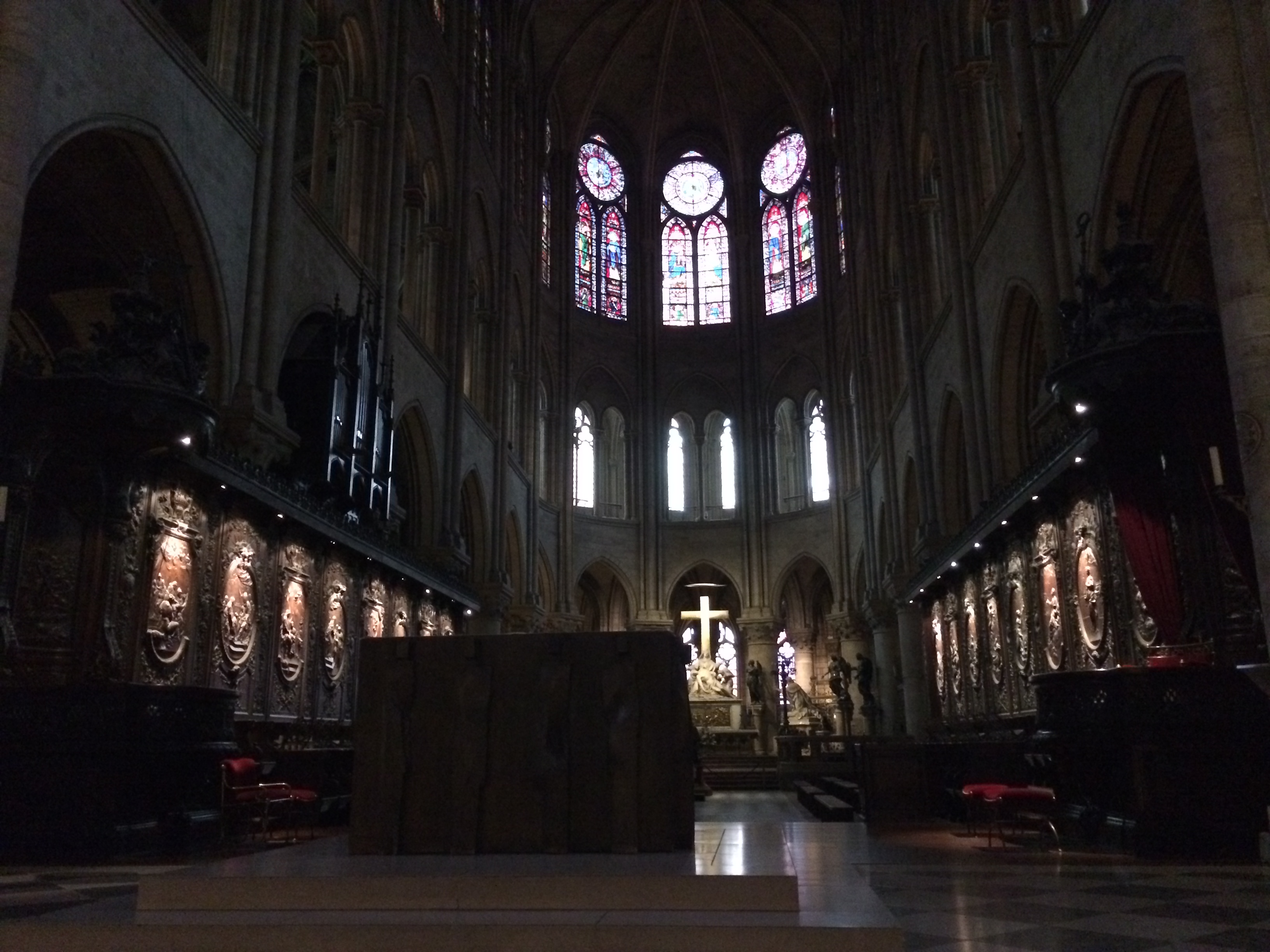 Когда несколько лет назад я собралась-таки в Париж, то мечтала увидеть не Эйфелеву башню или Версаль. А именно Нотр-Дам-де-Пари. Собор Парижской Богоматери. Эта мечта родилась еще в студенческие времена, когда я прочитала роман Виктора Гюго. Воображение живо рисовало картинку: в темноте парижских улиц взметнулся ввысь шпиль собора, в котором укрываются Квазимодо и Эсмеральда. Под влиянием содержания романа собор рисовался мне в сумрачных тонах, потому что вокруг живут темные люди, способные ради собственных желаний и личных амбиций бросить на эшафот ни в чем неповинного человека. Думая об этом творении рук человеческих, я невольно обращала свой взор к небу, представляя, как здание буквально разрезает небесную гладь своими шпилями. Да, это должно быть что-то монументальное, уходящее в небеса...