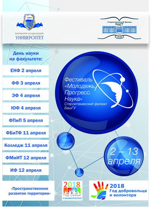 Ежегодный фестиваль молодых ученых «Молодежь. Прогресс. Наука» пройдет с 2 апреля по 13 апреля. Всех студентов, магистрантов и аспирантов факультета башкирской и тюркской филологии приглашаем принять активное участие в работе данного форума.