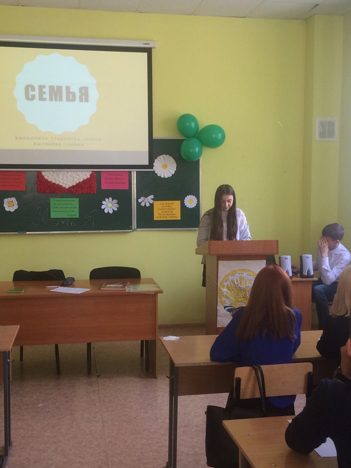 11 апреля 2018 г. в колледже СФ БашГУ в рамках фестиваля «Молодежь. Прогресс. Наука» прошло открытое мероприятие по дисциплине: "Обществознание" на тему: "Семья, закон, свобода - уважение и любовь", в котором приняли участие студенты I курса.