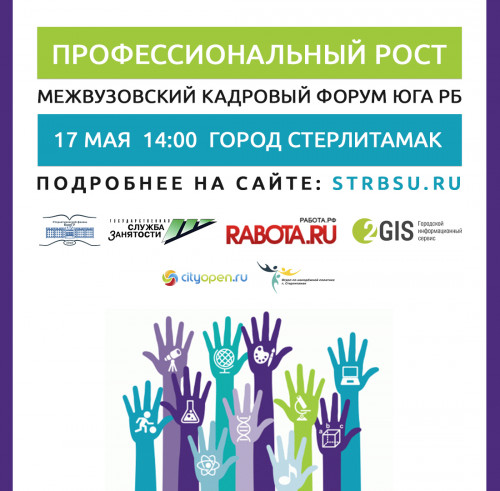 17 мая 2018 г. Стерлитамакский филиал БашГУ приглашает студентов и выпускников вузов, ссузов РБ на кадровый форум «Профессиональный рост».