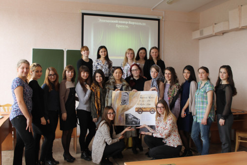 Студенты групп РО-31 и ИН-21 смогли познакомиться с биографией драматурга, с этапами его сложного жизненного пути. Студенты РО - 31 подготовили инсценировки кульминационных фрагментов драмы «Матушка Кураж и её дети». После просмотра состоялось их обсуждение. Были выявлены особенности драматургии Брехта. Студенты убедились, что в «эпическом театре» драматурга задача актёра состоит не в том, чтобы, растворившись в образе, добиться жизненности, а прежде всего в том, чтобы вызвать критическое, активное отношение к действительности, пробудить мысль, дойти до сердца зрителя через разум.
