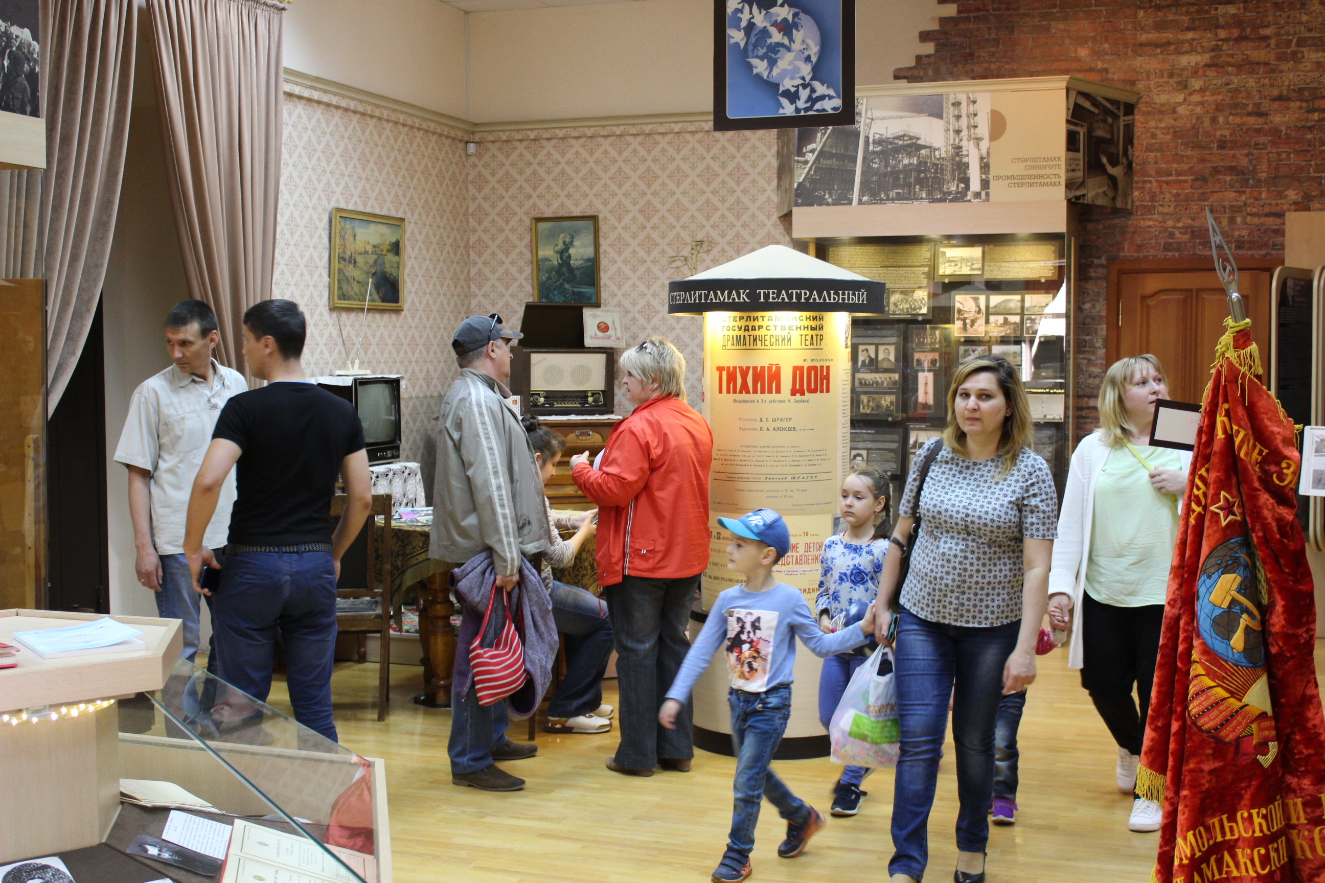 В зале истории города Стерлитамак посетители музея могли ознакомиться со следующими экспозициями: «О чем молчит музейный экспонат» - выставка открытого доступа уникальных предметов из фондов МАУК «СИКМ», посвященная 100-летию музея в рамках акции «Шедевры из запасников»; «Наши истоки…» - выставка материалов (документов, фотографий, книг) основателей Стерлитамакского краеведческого музея П.Х.Михайлова и Г.В.Склярова; «Советская квартира» - выставка предметов быта советской эпохи из фондов музея и личных архивов горожан, посвященная году семьи в РБ.