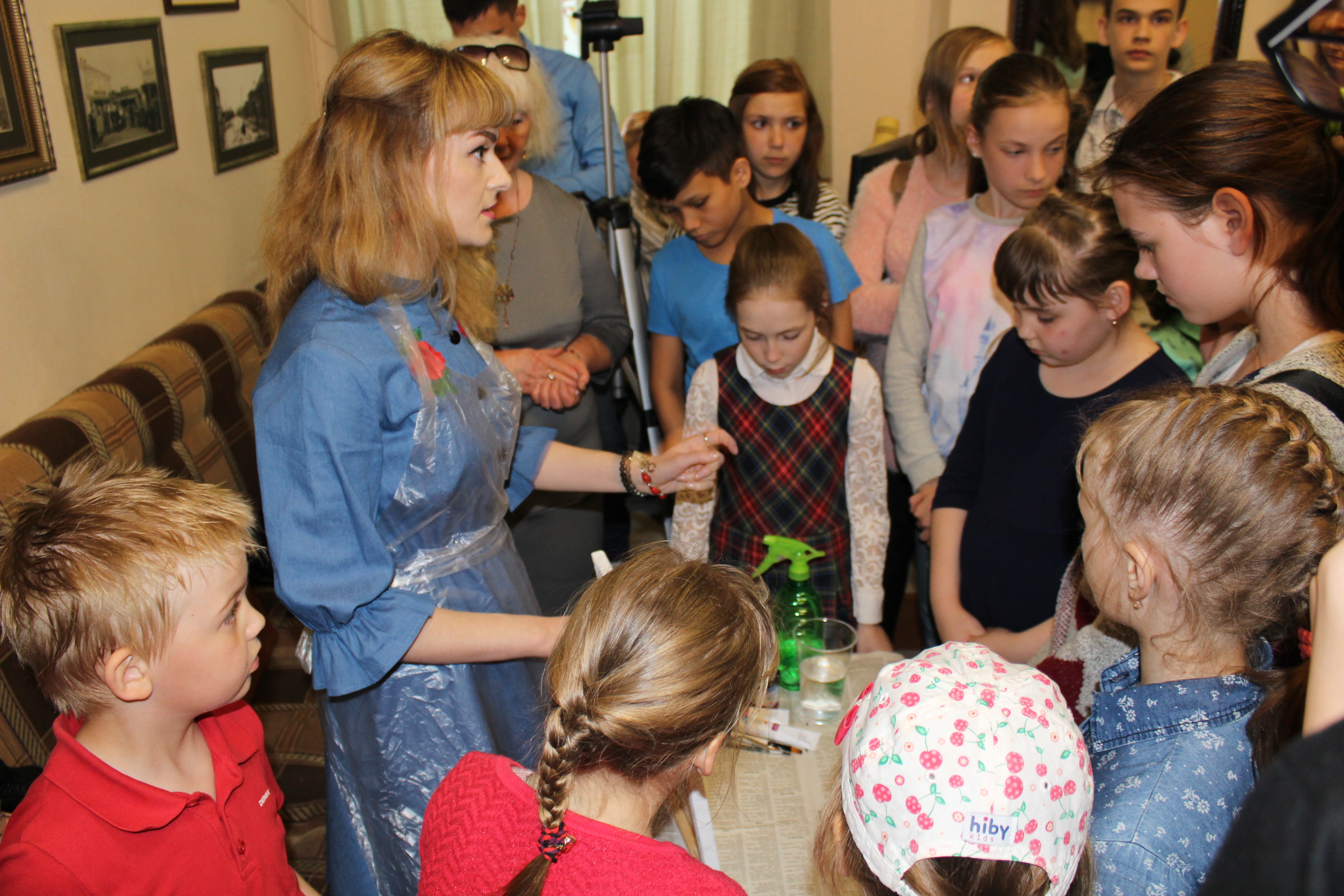 Юные посетители музея приняли активное участие в мастер-классе мастера ДПИ Л.В. Улитиной, в рамках которого они учились собственными руками мастерить детскую игровую куклу-бабочку, а также в мастер-классе по холодному батику художника – дизайнера Уйменовой Анастасии.