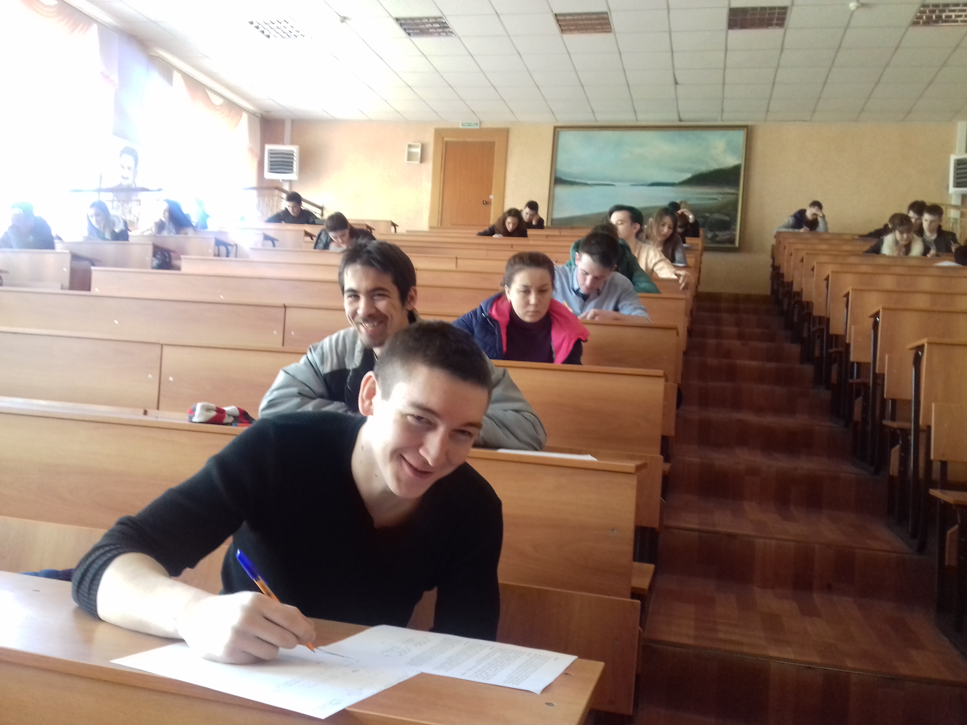 5 марта 2018 года в актовом зале корпуса ФМиИТ прошла факультетская олимпиада по физике среди студентов. В олимпиаде приняли участие студенты групп Физ11, Физ21, Физ31, Физ41, БФ21 и МФ21. После упорной борьбы и напряженной работы призовые места распределились следующим образом: