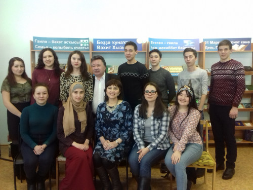 В библиотеке № 7 им. А. Инана г. Стерлитамак прошла встреча студентов групп Физ11, Физ21, Физ31, БФ21 с лауреатом Международного фестиваля “Тюрковизион” (г.Стамбул, Турция), дипломантом Международного конкурса камерного пения “Янтарный соловей” (г.Калининград), лауреатом премии им. Ш.Бабича, народным артистом РБ Хызыровым В.Г. К вниманию гостей мероприятия Вахит Галибаевич представил презентацию своей книги, посвященной малой Родине и землякам.