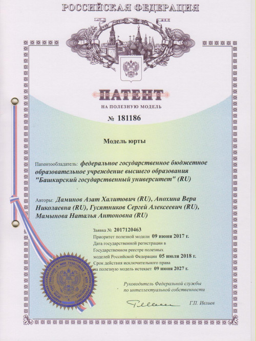 Коллектив преподавателей зарегистрировал патент новой модели юрты. «Умная юрта» предназначена для обучения детей основам конструирования и программирования. С помощью данного набора учащиеся смогут собрать и запрограммировать умную юрту, которая является моделью аналога системы умного дома. Набор содержит распространённый микроконтроллер UNO, набор датчиков и сенсоров, конструктивные элементы юрты, соединительные провода, учебно-методическое пособие «Умная юрта». Все элементы электронного конструктора находятся в удобном контейнере с множеством отделений.