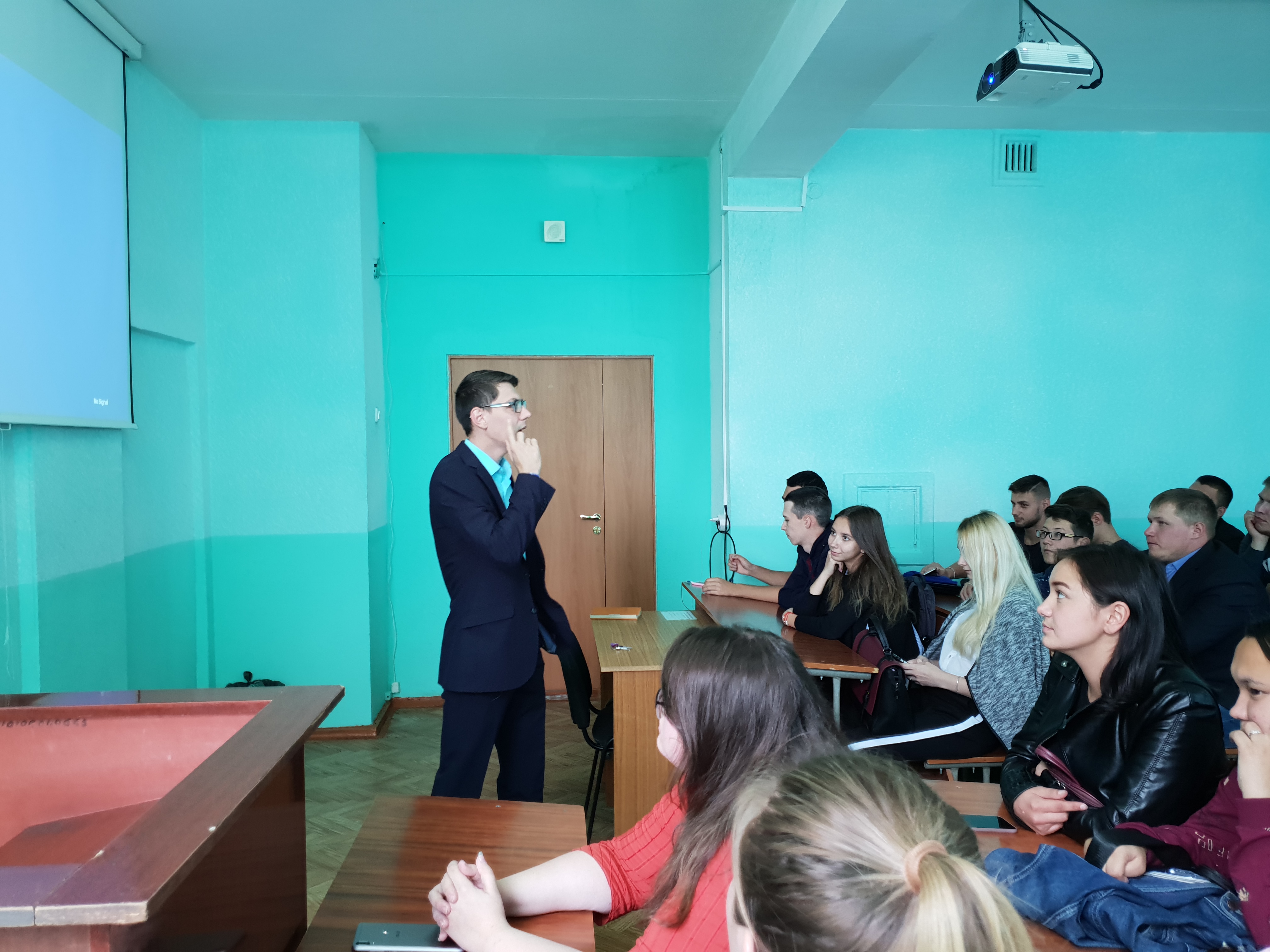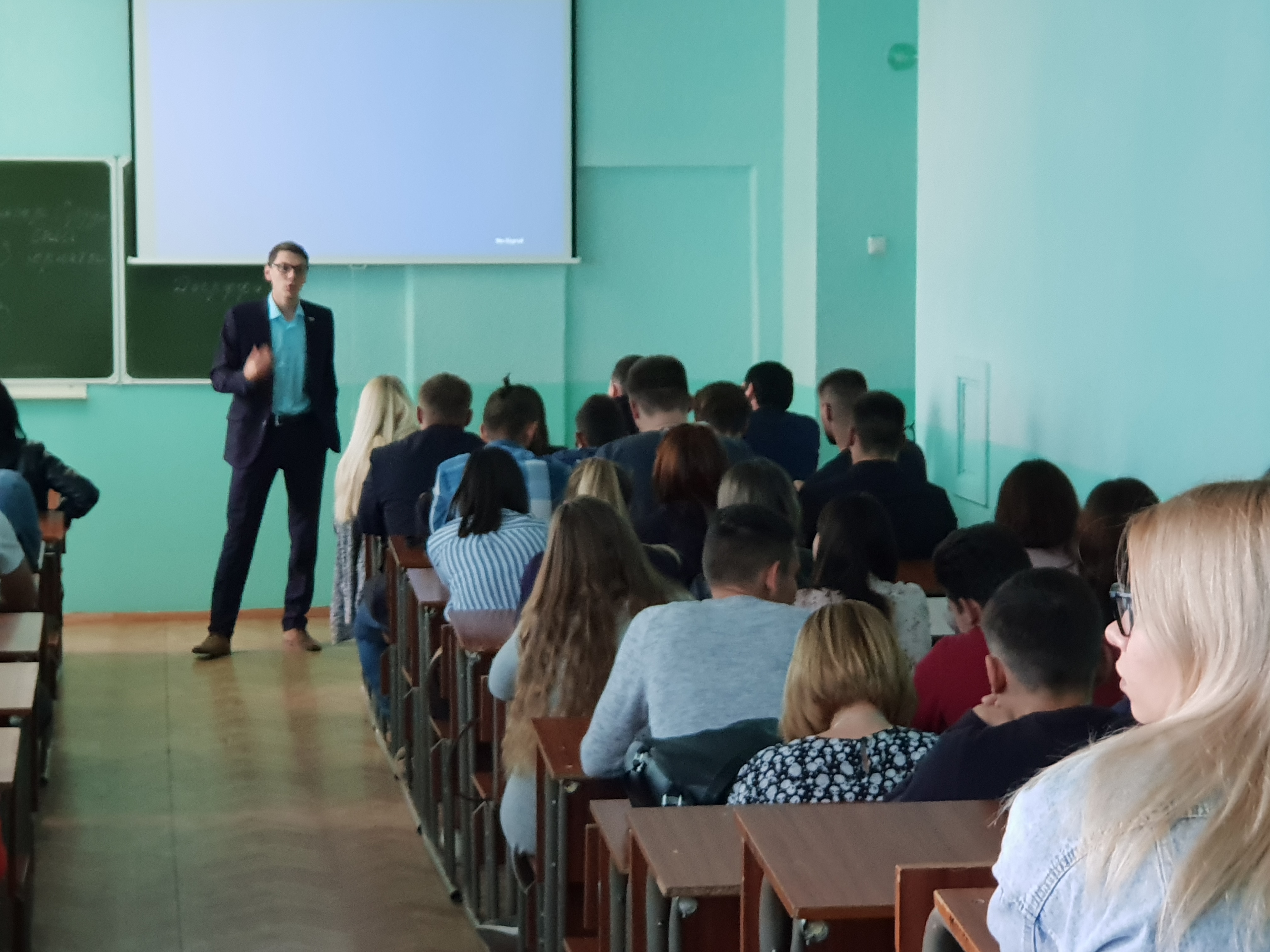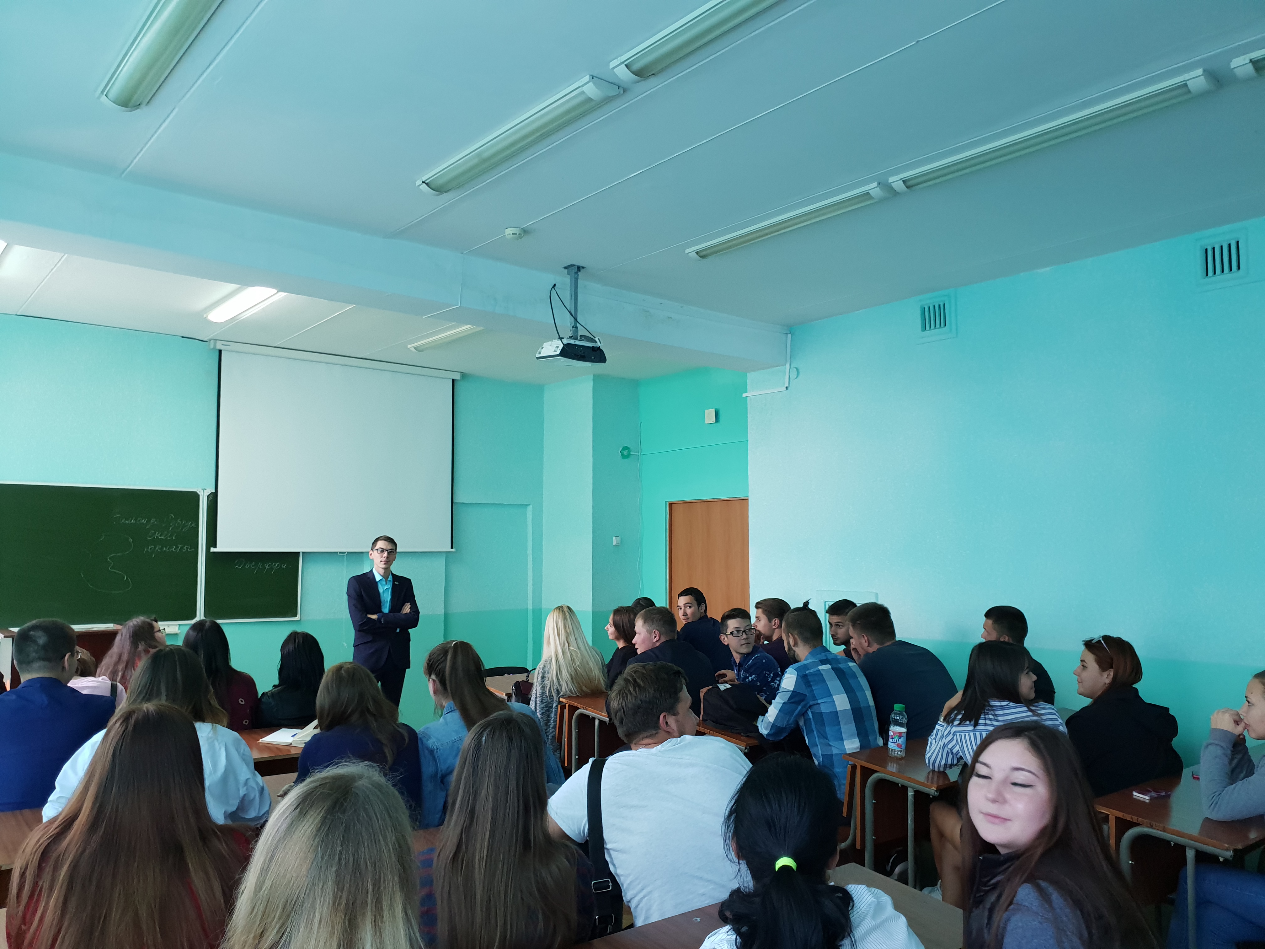 Перед студентами выступил руководитель регионального объединения Молодой Гвардии Артем Александров.