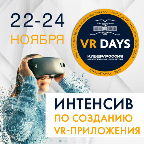 Подробнее про первый VR-Days: https://strbsu.ru/news/1072Развитие цифровых образовательных технологий в СФ БашГУ: https://strbsu.ru/nots_tsotПодробнее про направление «Программирование и дизайн VR/AR» и первую в Башкортостане VR/AR-лабораторию: www.gdvr.ruРегистрация на событие: https://eps.timepad.ru/event/848273/Группа во «Вконтакте»: vk.com/gdvrrb