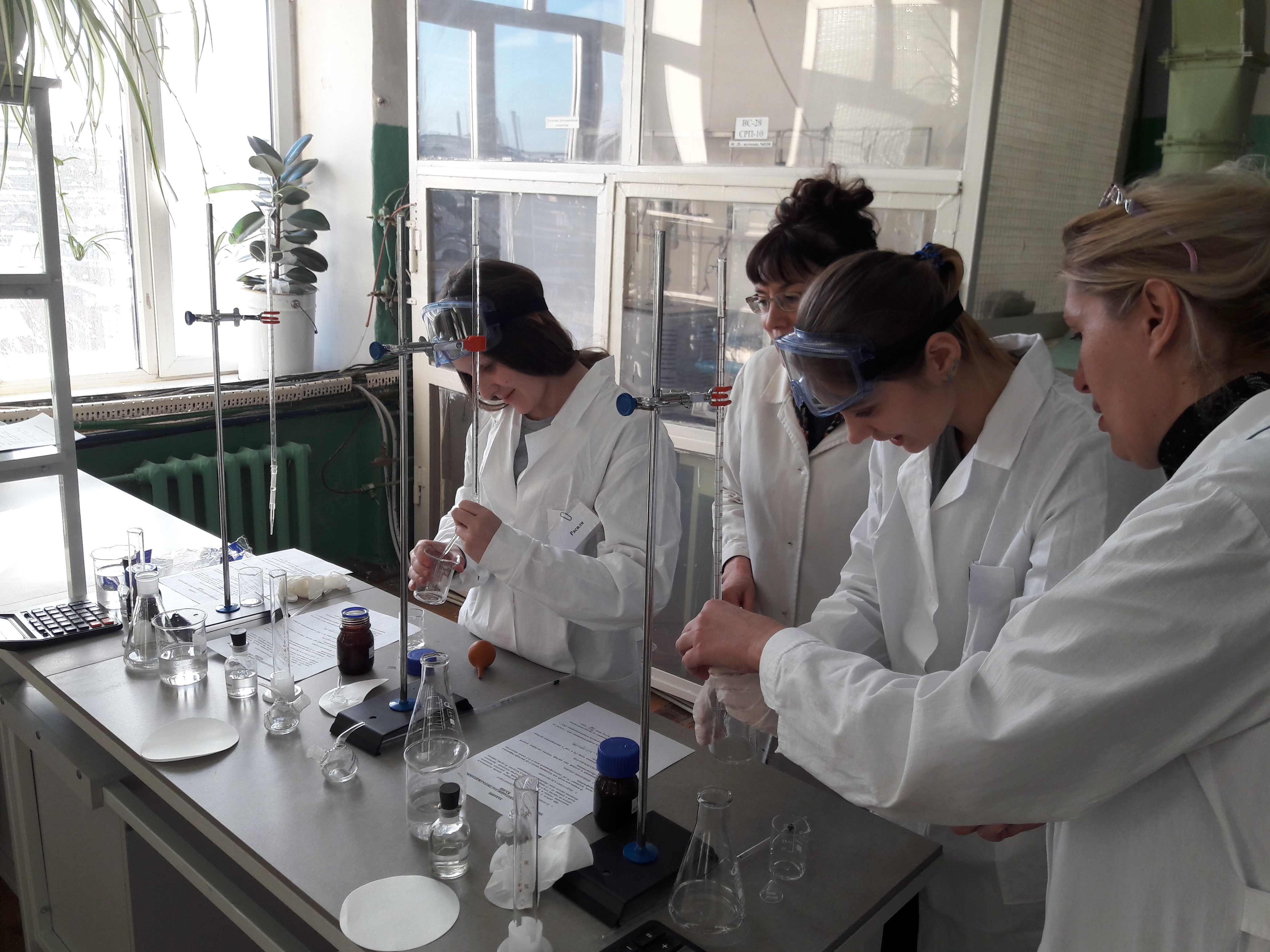 В лаборатории для студентов были подготовлены задания, где они могли попробовать себя в роли лаборантов. Задания состояли из практической и теоретической части: первое задание было на определение массы гидроксида калия в растворе, методом кислотно-основного титрования. Второе задание в виде теста на знание теории по химии. Как отметил начальник лаборатории студенты отлично справились с заданиями.