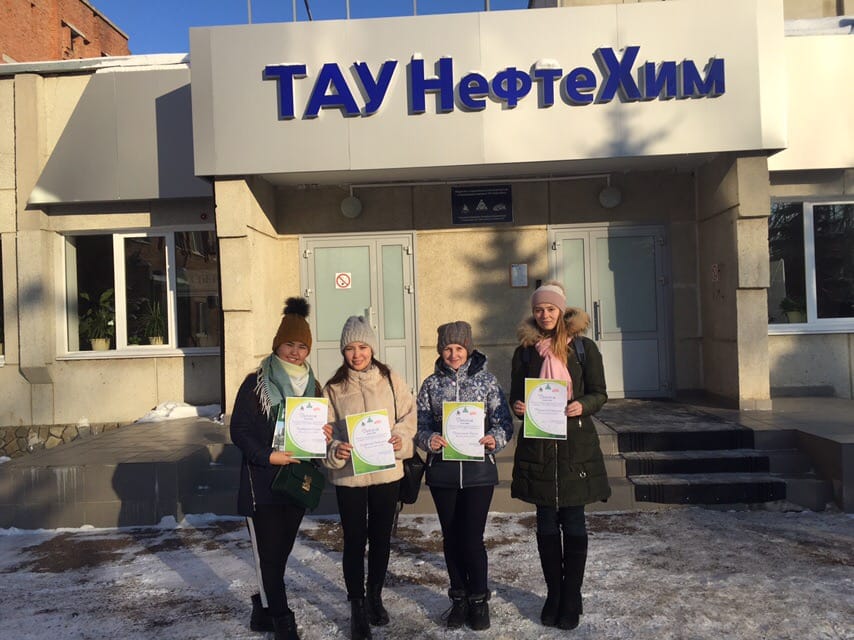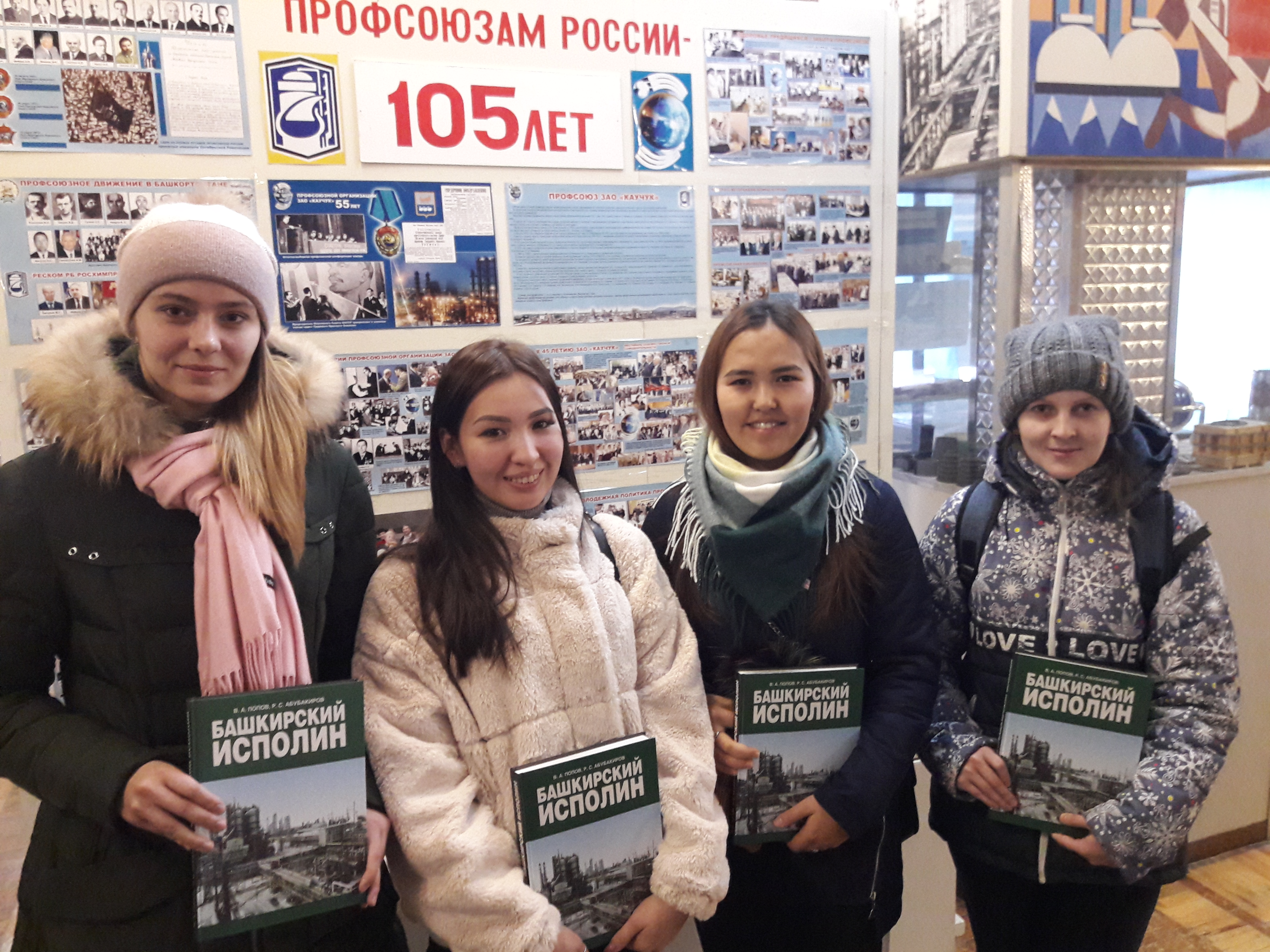 5 декабря 2018 года студенты естественнонаучного факультета группы ХИМ-41, обучающиеся по направлению «Химия» программы Высокомолекулярные соединения, вместе со старшим преподавателем кафедры химии и химической технологии Казаковой Е.В. посетили Стерлитамакский нефтехимический завод ОАО «СНХЗ» с целью реализации проекта «В гостях у работодателя». Экскурсия состояла из трех частей: сначала для студентов был проведен инструктаж по охране труда и правилам безопасности на заводе, далее посещение музея завода, где рассказали историю завода, показали выставку о передовиках завода и рассказали о директоре Н.Я. Еременко, который сделал очень много для завода. Под руководством Н.Я. Еременко в Стерлитамаке было создано одно из крупнейших предприятий отрасли по производству синтетических изопреновых каучуков, мономеров для их производства из нефтяного сырья и катализаторов для каучуковой промышленности. После окончания каждому студенту подарили по книге В.А. Попова, Р.С. Абубакирова «Башкирский Исполин».