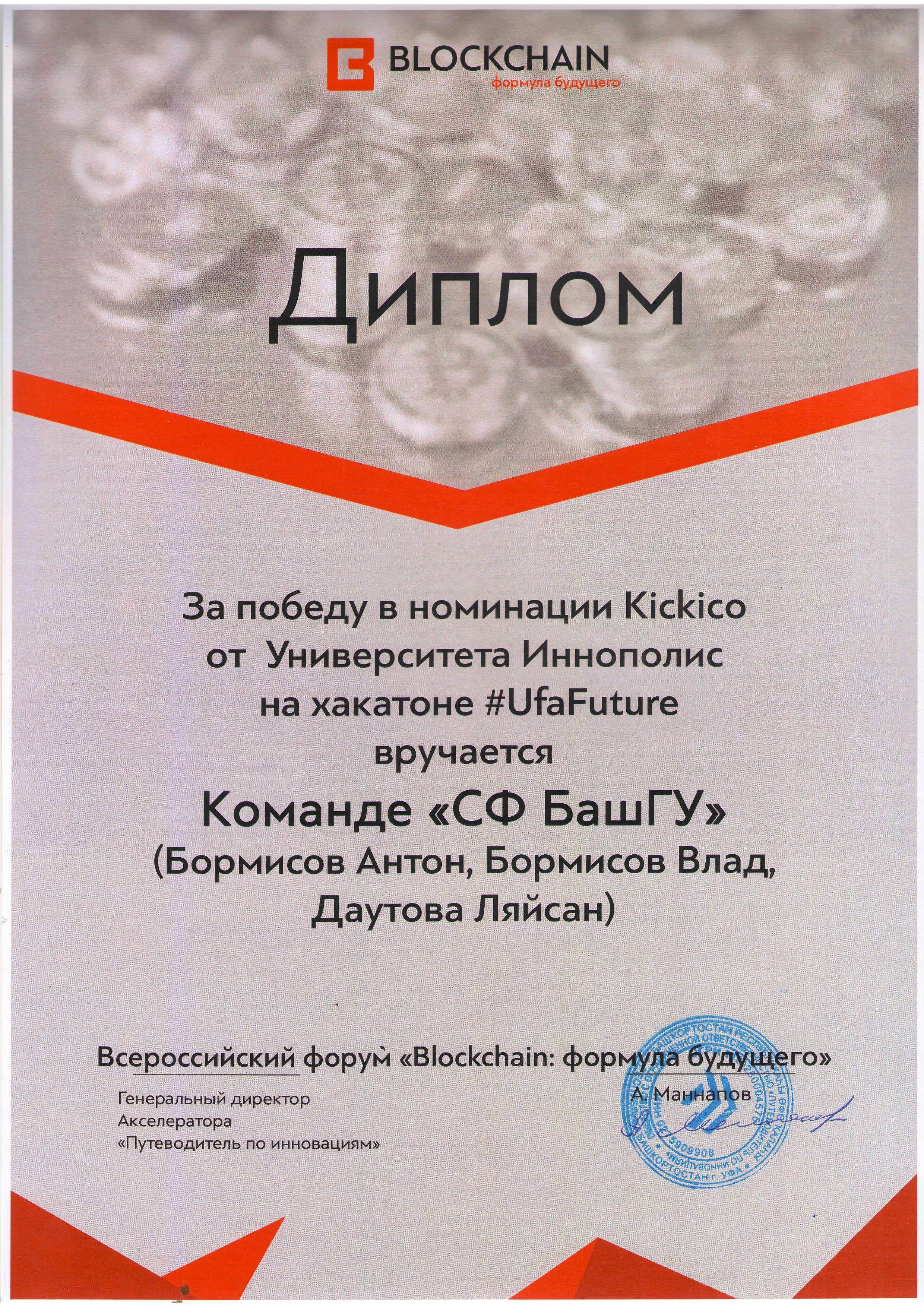 По результатам хакатона команда получила приз за проект в номинации «Самый продуманный консенсус» от компании BitClave, а также приз в номинации Kickico от Университета Иннополис. В рамках проекта был написан смарт-контракт для сети Ethereum. С кодом проекта можно ознакомиться по ссылке https://github.com/bormisov1/EtherPool.