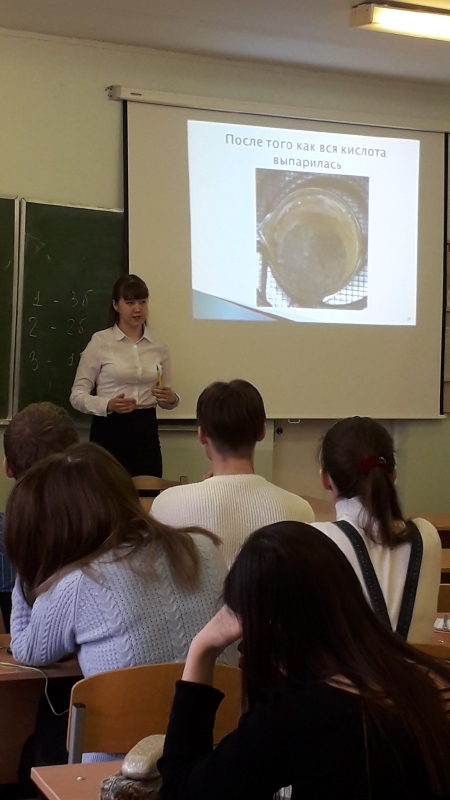 Занятие секции «Неорганическая химия» в рамках Фестиваля науки «Молодежь. Прогресс. Наука» проходила 3 апреля 2019 г. с целью активизации исследовательской деятельности студентов, содействия междисциплинарной интеграции научного знания. Инициатором выступила руководитель секции - к.п.н., доцент Файзуллина Н.Р. К участию в секционном занятии были приглашены учащиеся МБОУ СОШ №11 г. Стерлитамак, студенты выпускного курса группы Хим-41 программы «Высокомолекулярные соединении» и студенты 1 курса Хим-11 направления подготовки «Химия» программы Фундаментальная и прикладная химия. Всего в мероприятии приняли участие более 20 человек. С приветственным словом выступил заведующий кафедрой, д.т.н. Абдрашитов Я.М. Он пожелал участникам научного мероприятия.