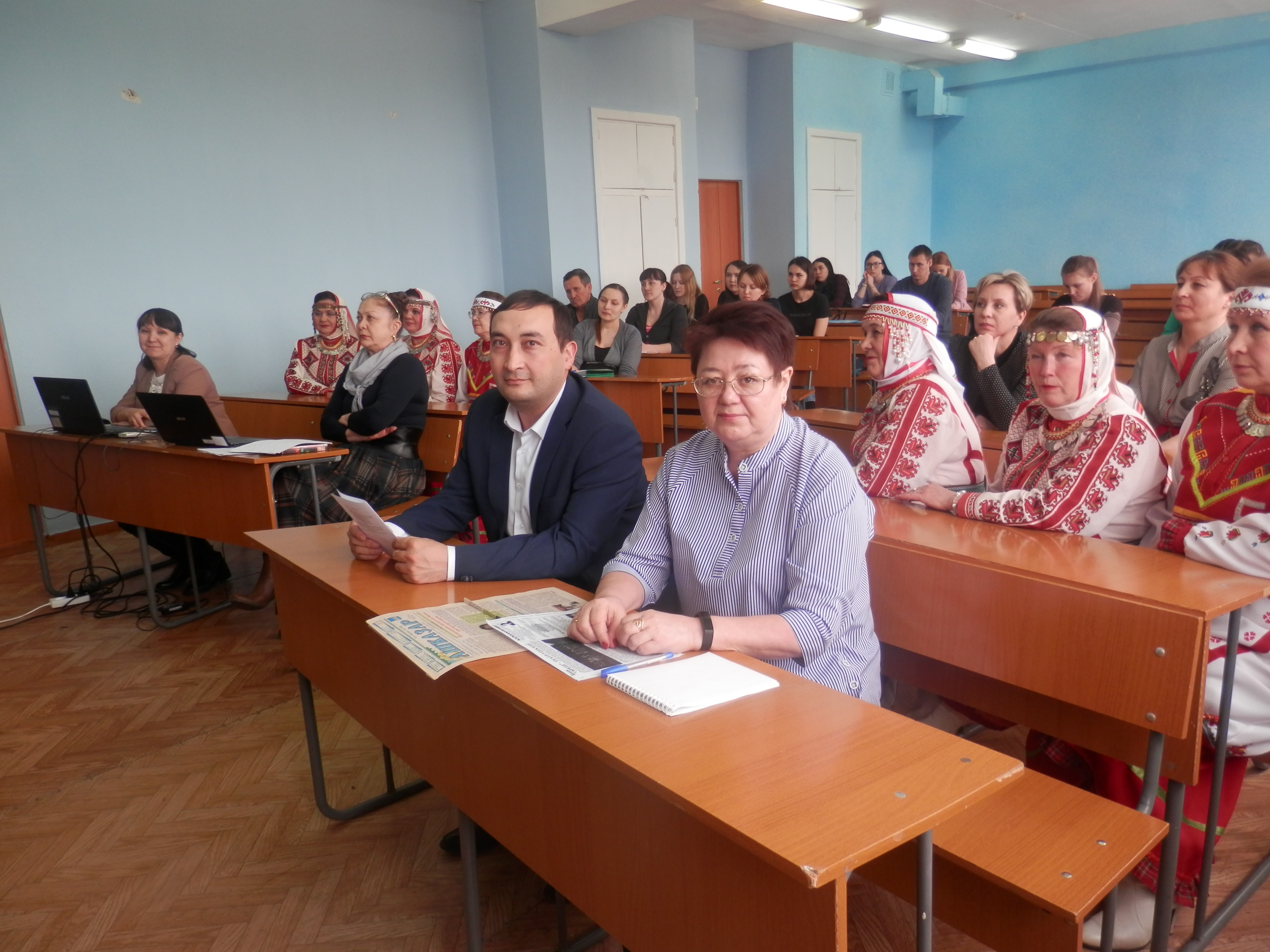В рамках круглого стола выступили с докладами студентки чувашского отделения факультета башкирской и тюркской филологии Екатерина Афанасьева («Исчезающие и мертвые языки в современном мире»), Алина Федорова «Сходства и различия чувашских и английских праздников». Особый интерес участников вызвало выступление магистрантки 2 курса филологического факультета Юлии Вальщиковой на тему «Рекрутская обрядность чувашей Федоровского района Республики Башкортостан». Выпускница магистратуры филологического факультета СФ БашГУ 2017, председатель Стерлитамакского объединения Канаша чувашей РБ Н.Е. Кобцева на примере своей проектной работы «Календарно-обрядовый фольклор чувашей Башкортостана» показала, что метод проектов – это совместная деятельность преподавателя, студентов и родителей, направленная на поиск решения возникшей проблемы. Выступающим было задано много вопросов. В работе круглого стола приняли активное участие доценты кафедры ТиЧФ И.С. Мансуров, Л.А. Афанасьева, Н.С. Карпова, Л.В. Коротаева, член местной общественной организации «Чувашская национально-культурная автономия г. Стерлитамак РБ» В.М. Ерохин и студенты. Большую активность в работе круглого стола проявила театрально-фольклорная студия «Эреш» (руководитель – Кобцева Н.Е.). Артисты в чувашских национальных нарядах исполняли чувашские народные песни. Работа круглого стола получилась очень разноплановой и интересной.
