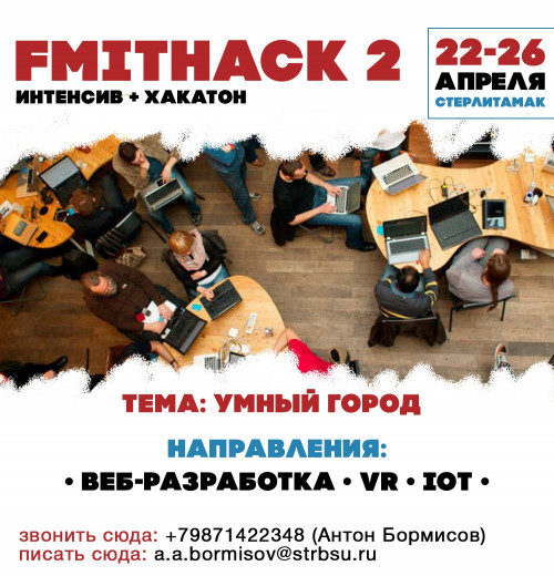 С 22 по 26 апреля факультет математики и информационных технологий Стерлитамакского филиала БашГУ приглашает на мероприятие в формате интенсив + хакатон (командное соревнование по программированию). Приглашаются учащиеся 9-11 классов с базовыми знаниями в программировании и студенты профильных направлений.