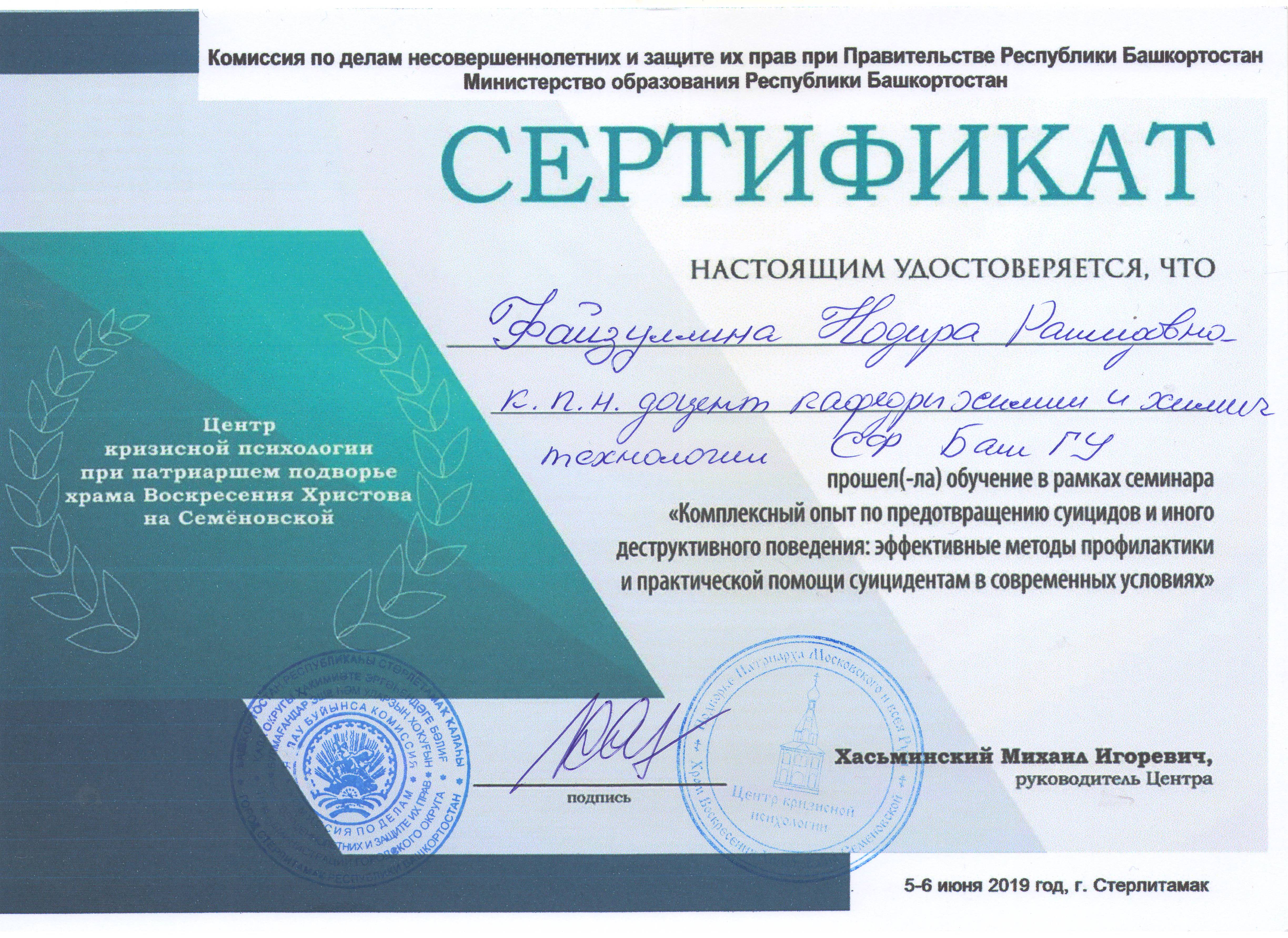 5-6 июня состоялось обучение в рамках семинара «Комплексный опыт по предотвращению суицидов и иного деструктивного поведения: эффектмвные методы профилактики и практической помощи суицидентам в современных условиях», организованное комиссией по длам несовершеннолетних и защите их прав при Правительстве РБ и Министерство образования РБ. Ведущий-руководитель Центра кризисной психологии — Хасьминский Михаил Игоревич, человек с колоссальным опытом работы.