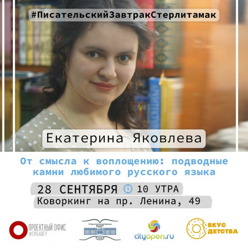 И гостем Писательского завтрака на этот раз станет Екатерина Яковлева. Многие знают её как корреспондента газеты "Стерлитамакский рабочий". А ещё Екатерина пишет стихи и прозу и расскажет о подводных камнях любимого русского языка