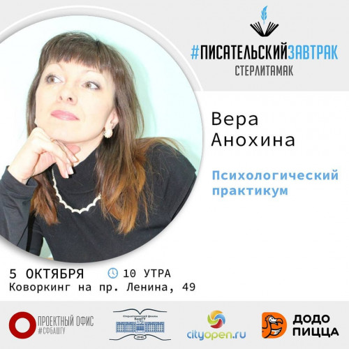 5 октября в коворкинге СФ БашГУ состоится писательский завтрак. В роли спикера выступит Вера Анохина, которая расскажет, как найти себя и проведет с гостями психологический практикум.