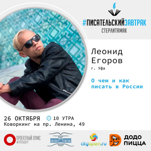 Об этом поговорим с Леонидом Егоровым на седьмом писательском завтраке.