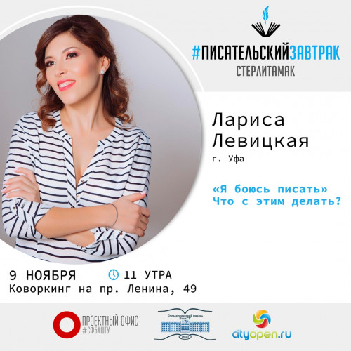Девятый по счету "Писательский завтрак" посетит Лариса Левицкая - писатель из Стерлитамака. Основной жанр - рассказ.