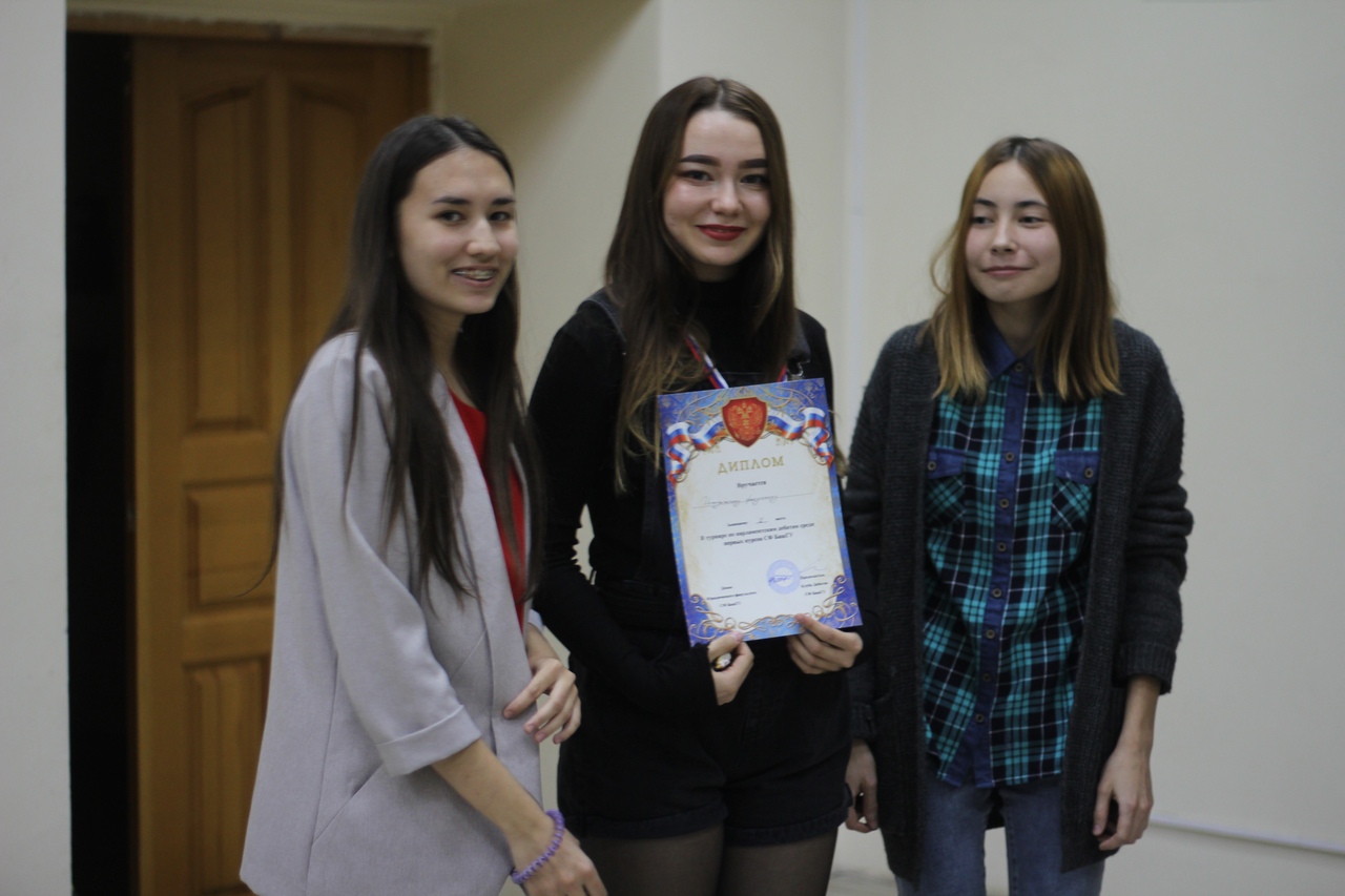 На Турнире честь исторического факультета достойно отстаивали: Башарова Алсу, Федорова Инга, Хайриева Азиза, Калабухова Ксения! Проявив все свои лучшие качества, навыки в аргументации и убеждении наши бойцы с блеском преодолели все испытания! Вы смогли не только отлично проявить себя, но и заняли 2 место, тем самым достойно представили Исторический факультет!
