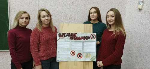 На факультете педагогики и психологии студенты группы НДО21 выпустили стенгазету под заголовком «Вредные привычки». В газете нашли отражение материалы «Курение – медленное самоубийство», «Наркотики опасны для жизни», «Рекомендации по отказу от вредных привычек».