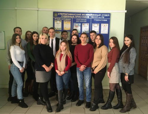 10 декабря 2019 годам в рамках приобретения практических навыков по дисциплинам «Правовые основы деятельности Федеральной службы судебных приставов», «Исполнительного производства» и содействия трудоустройства выпускников юридического факультета Стерлитамакского филиала БашГУ, студенты ГОС41 юридического факультета со старшим преподавателем А.Т. Ахметовой, в процессе практических занятий приняли участие, в экскурсионной программе в Федеральной Службе Судебных Приставов Российской Федерации.