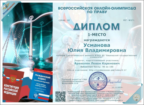 Cтуденты 2 и 3 курса колледжа СФ БашГУ специальности «Право и организация социального обеспечения» приняли активное участие во Всероссийской онлайн-олимпиаде по праву.