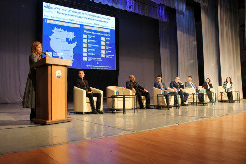 «Поезд ректоров» в Стерлитамаке «останавливался» на двух площадках. На первой были представлены экспозиции ведущих вузов республики, в том числе и Башкирского государственного университета, в частности - Стерлитамакского филиала.