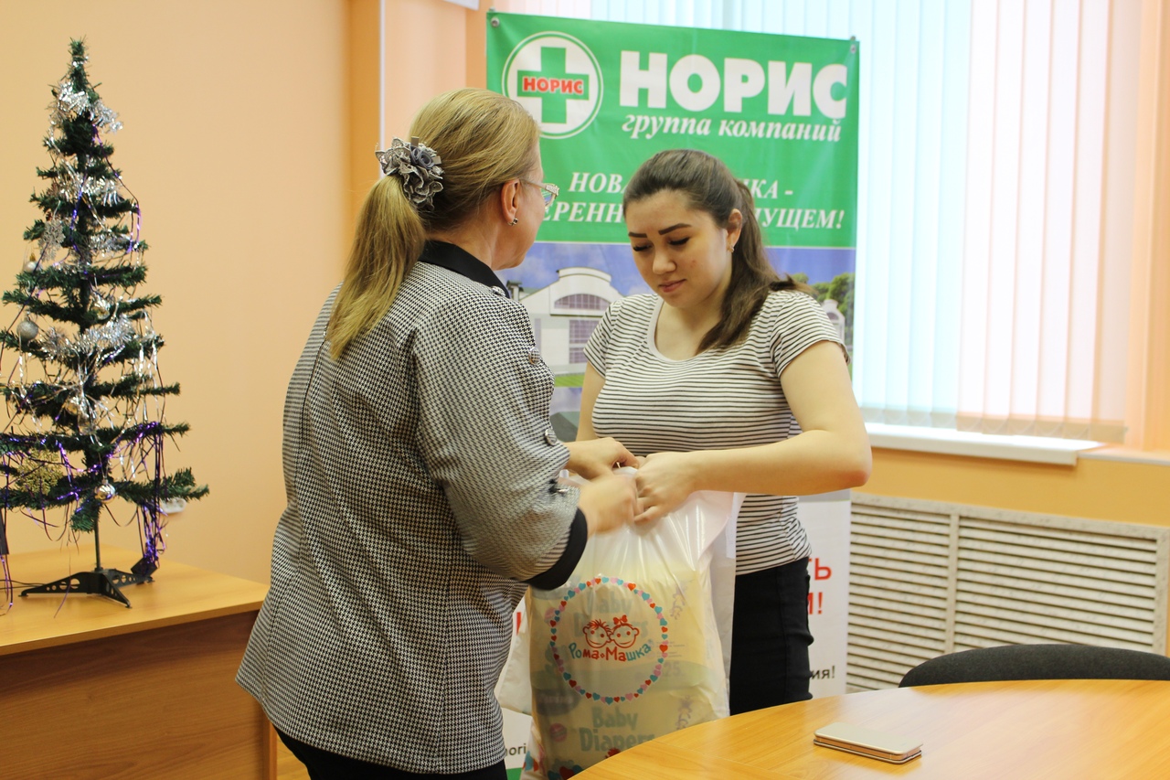 Подарочные пакеты, подаренные молодым мамам, собирались сотрудниками медицинского центра «Норис» с учетом возраста малышей: самому маленькому всего три недели, а старшему едва исполнилось полгода. В каждом наборе – подгузники, косметика для ухода за грудничком, салфетки, костюмчик и необходимые мелочи.