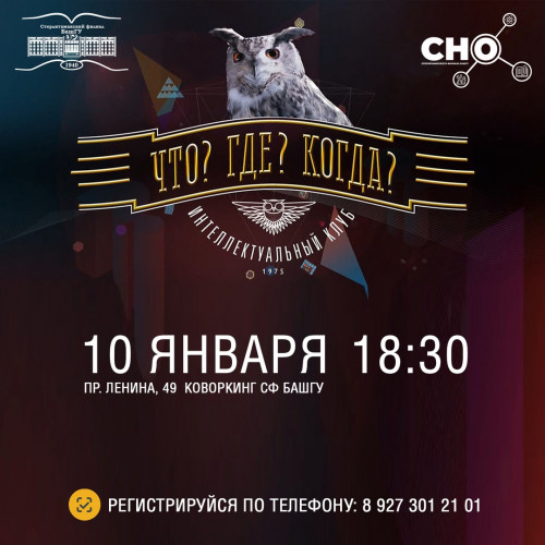 10 января Студенческое Научное Общество Стерлитамакского филиала БашГУ собирает друзей и приглашает студентов, преподавателей, сотрудников на интеллектуальную игру "Что?Где?Когда?"