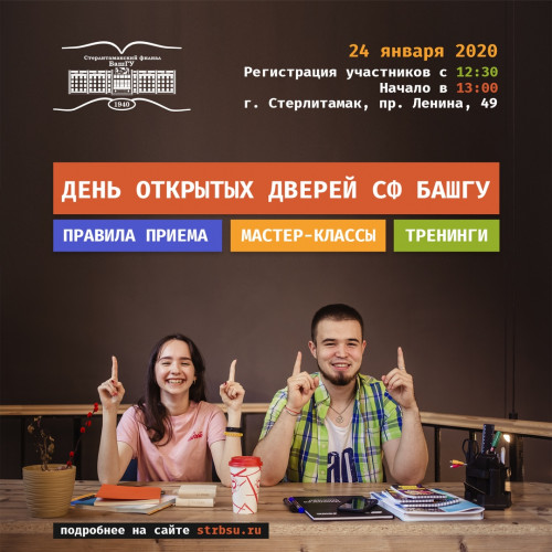 Все факультеты СФ БашГУ и колледж приготовили презентации образовательных программ, интересные лекции и полезные практические занятия.
