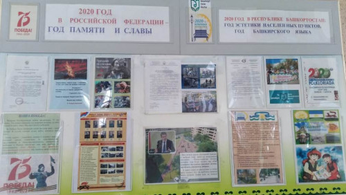 В Республике Башкортостан 2020 год объявлен Годом эстетики населенных пунктов: газоны, тротуары, освещение, заборы. По инициативе МСОО «Всемирный курултай (конгресс) башкир» 2020 год объявлен Годом башкирского языка. На стенде отражены соответствующие Указы, рекомендации и планы, а также иллюстративный материал. Стенд оформили студенты группы НДО 11, куратор группы ассистент кафедры ТиМНО Саттарова Лиана Сибагатовна.