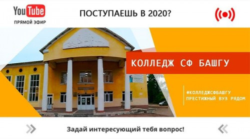 26 мая в 15:00 в прямом эфире заведующий колледжем СФ БашГУ, Почетный работник СПО РФ, Заслуженный учитель РБ Ткачева Надежда Николаевна расскажет все об особенностях поступления в СПО 2020 года, а также ответит на все твои вопросы!