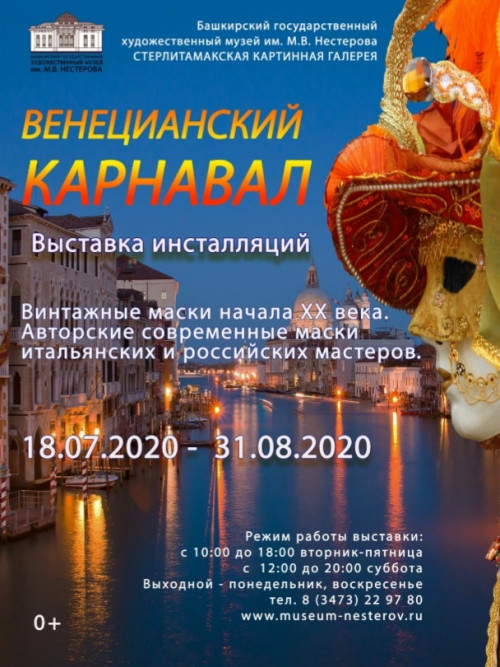 С 18 июля по 31 августа в Стерлитамакской картинной галерее вниманию посетителей будет представлена Выставка «ВЕНЕЦИАНСКИЙ КАРНАВАЛ»