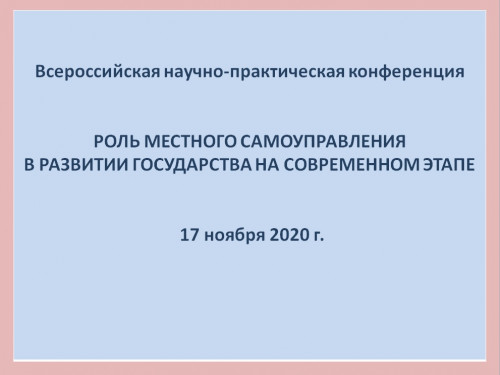 Благодарим всех участников и гостей Всероссийской научно-практической конференции «Роль местного самоуправления в развитии государства на современном этапе» за проделанную работу, актуальные, имеющие большую практическую значимость выступления.