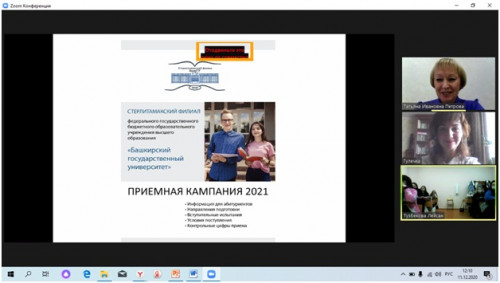 11 декабря 2020 года доценты кафедры педагогики начального образования Татьяна Ивановна Петрова и Гульнара Маратовна Синдикова на платформе Zoom провели конференцию по профориентационной работе для студентов ГБПОУ «Кумертауский педагогический колледж».