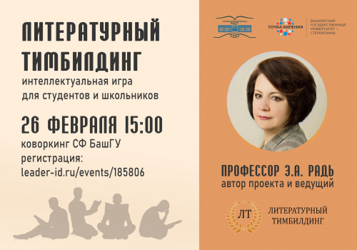 26 февраля в 15:00 в Точке кипения СФ БашГУ пройдет Литературный тимбилдинг - интеллектуальная игра для студентов и школьников. Ведущий и автор проекта - профессор Э.А. Радь.