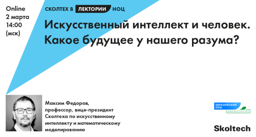 2 марта в 14.00 (мск) состоится первая онлайн-лекция на тему «Искусственный интеллект и человек. Какое будущее у нашего разума?».