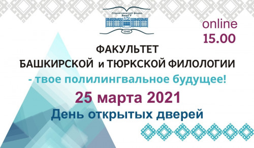 Факультет башкирской и тюркской филологии СФ БашГУ приглашает абитуриентов и их родителей на День открытых дверей в online-формате. Подключиться к эфиру можно 25 марта 2021 года в 15:00.
