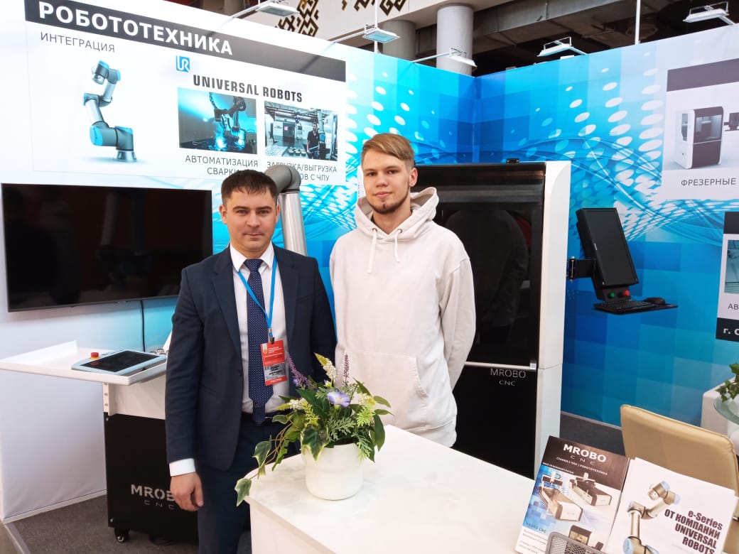 Компания «М-Робо» представила в выставочной экспозиции промышленного форума. технологический модуль "робот-станок". Вертикально-фрезерный станок с ЧПУ является продукцией собственного производства. В данном модуле для реализации вспомогательных операций был использован интегрируемый коллаборативный робот UNIWERSAL ROBOT.