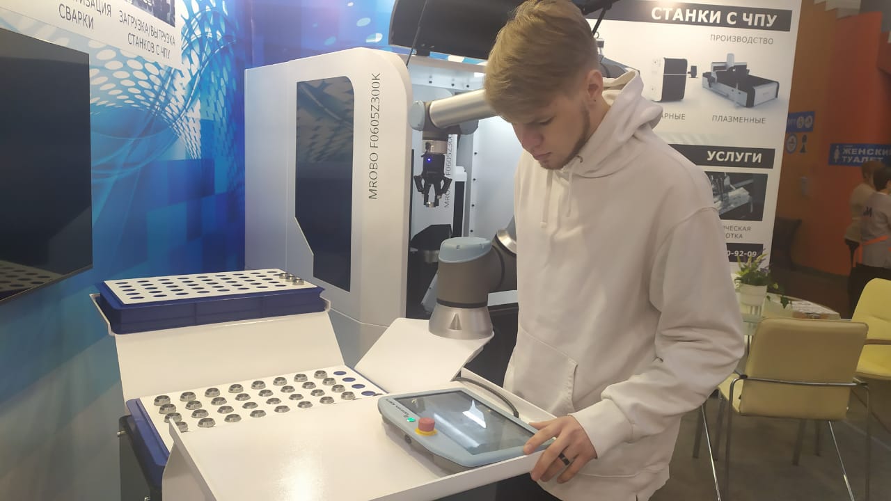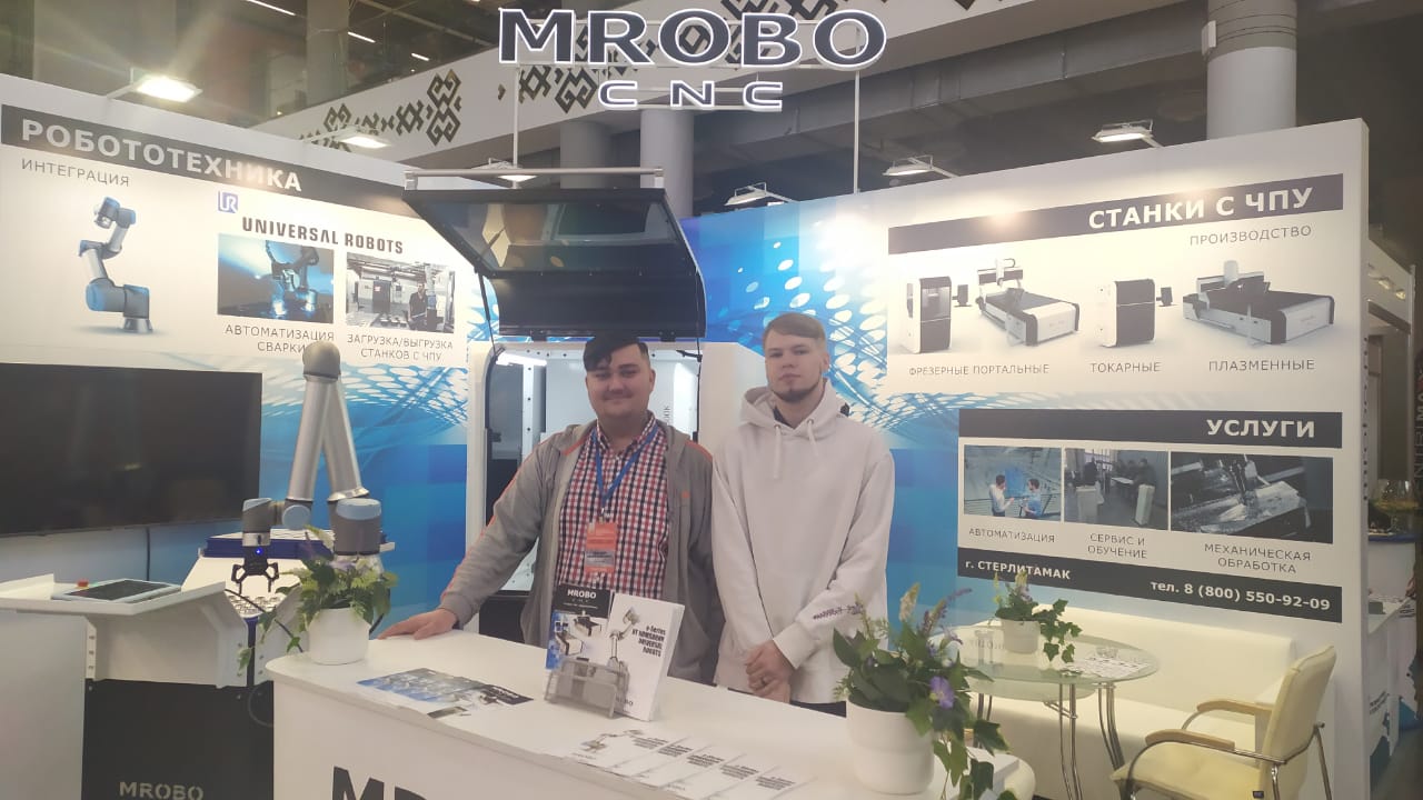 Представители компании на выставке рассказывали и демонстрировали возможности станка и робота. Одним из участников компании на выставке был студент группы 3М21 колледжа СФ БашГУ Даниил Крехов. Необходимые компетенции по интеграции робота UNIWERSAL ROBOT Даниил приобрел в ноябре 2020 года, когда компания «М-Робо» оплатила обучение ему и еще 2 студентам колледжа в центре TECHNORED в г. Москва.