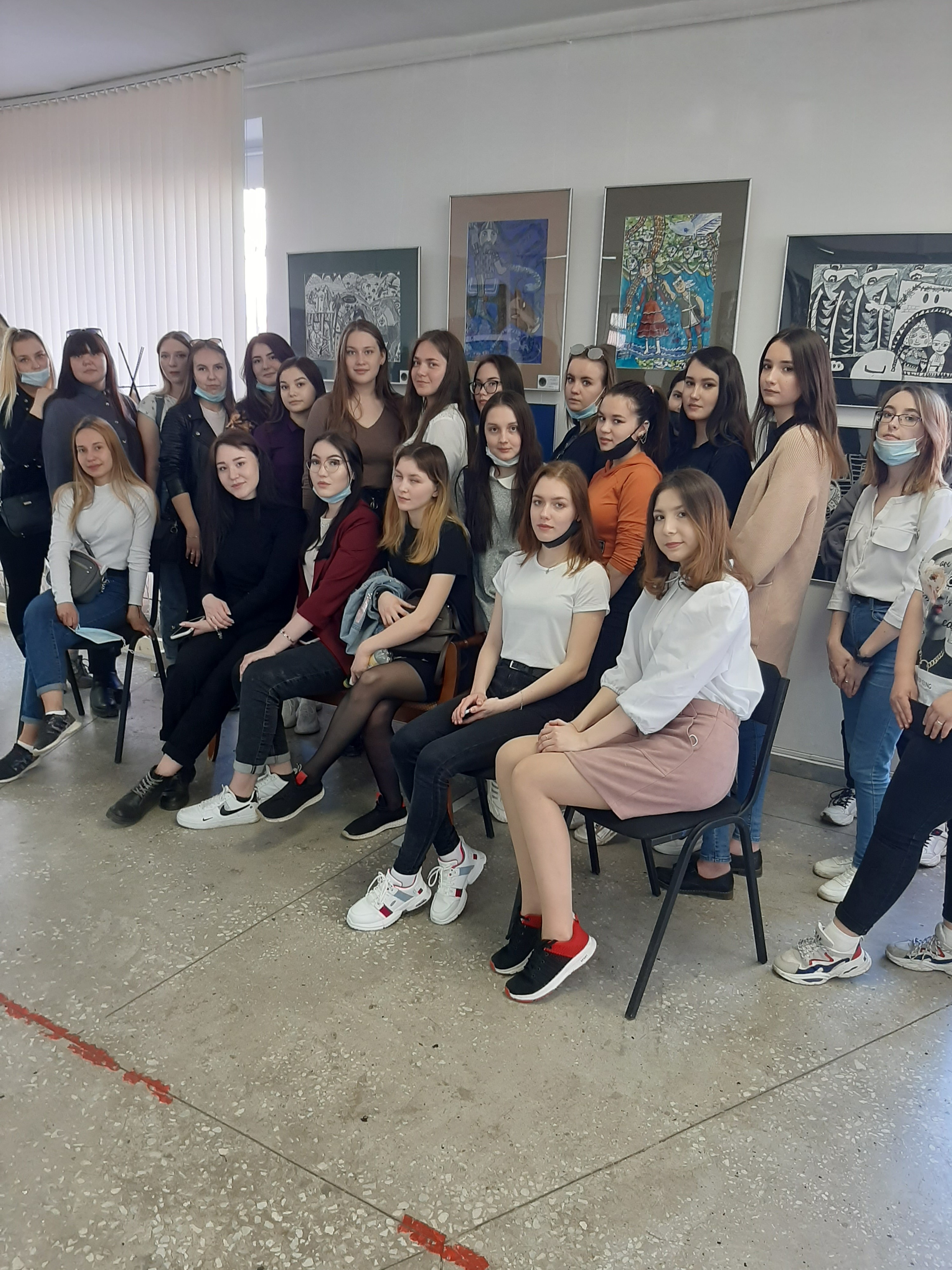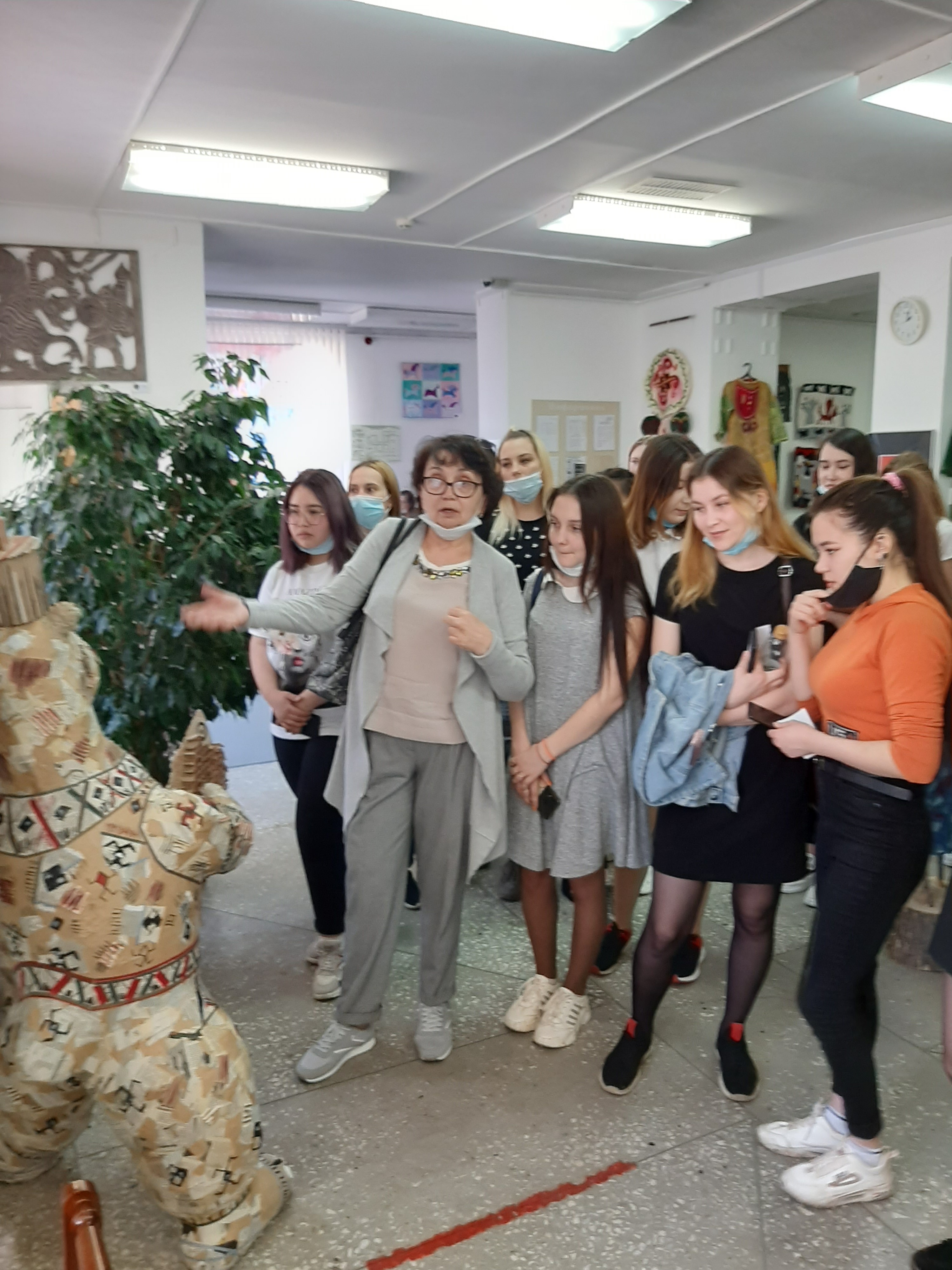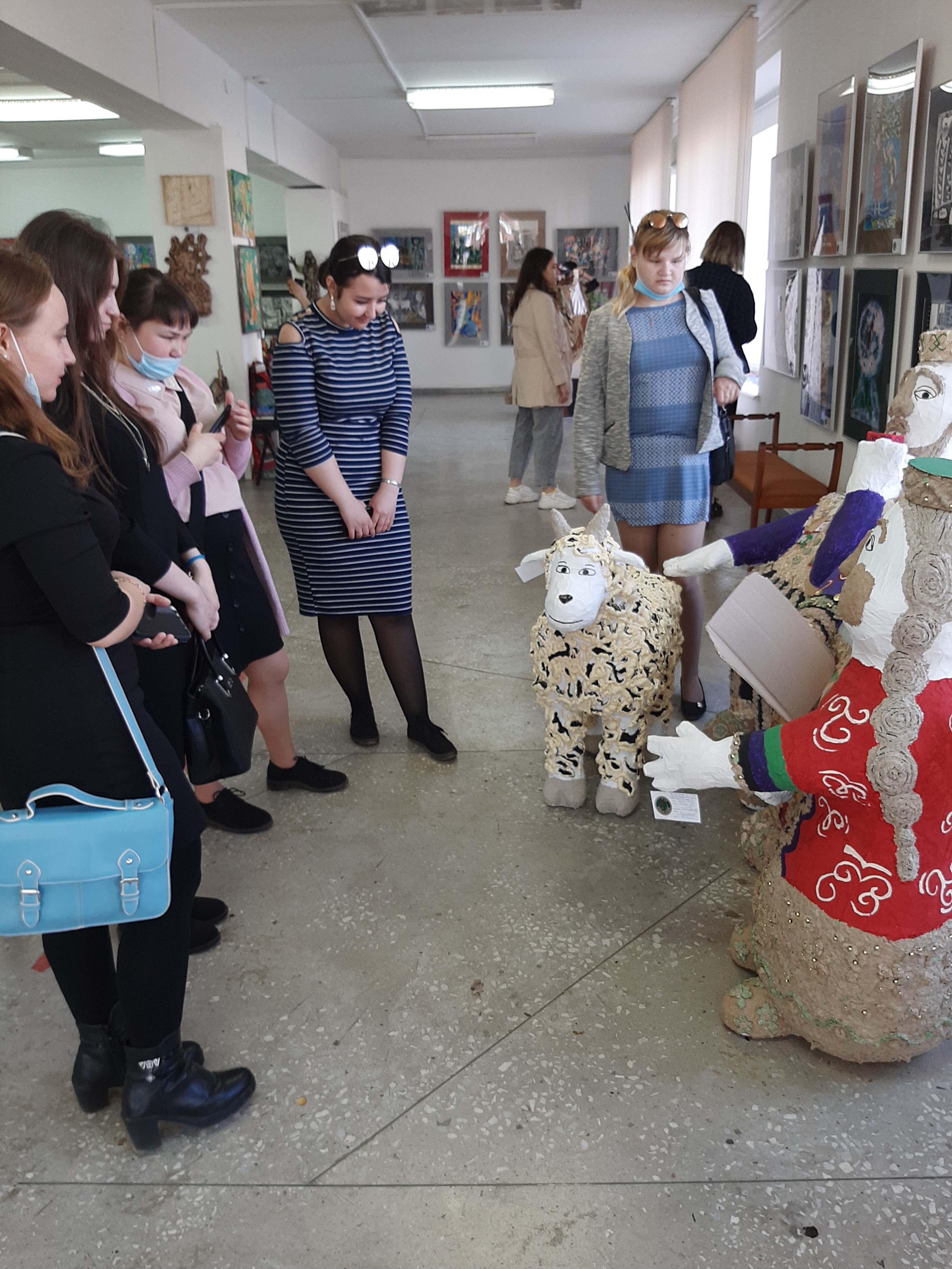 Студенты с радостью и восхищением встретили знакомых героев из любимых сказок, мифов и легенд, нарисованных акварелью, гуашью, углем, цветными мелками, гелевыми ручками и фломастерами. Экскурсия была направлена развитие и популяризацию детского художественного творчества, изучение исторического наследия народов мира (мифы, легенды, сказания, эпосы), выявление и распространение инновационных направлений в преподавании изобразительного искусства, получение новых знаний в ходе занятия творчеством. Руководитель познакомила с различными техниками выполнения и рассказала студентам, что такое войлок, папье-маше, авторская текстильная кукла, керамика и бумажная пластика.