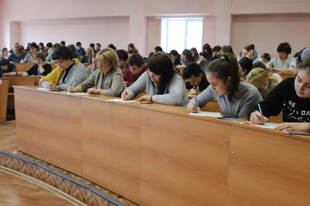 Текст диктовала ветеран педагогического труда кафедры башкирской филологии Лидия Лутфрахмановна Самигуллина. К просветительской акции присоединились отдел образования ГО г. Стерлитамак, учителя и обучающиеся школ, колледжей, студенты и преподаватели.