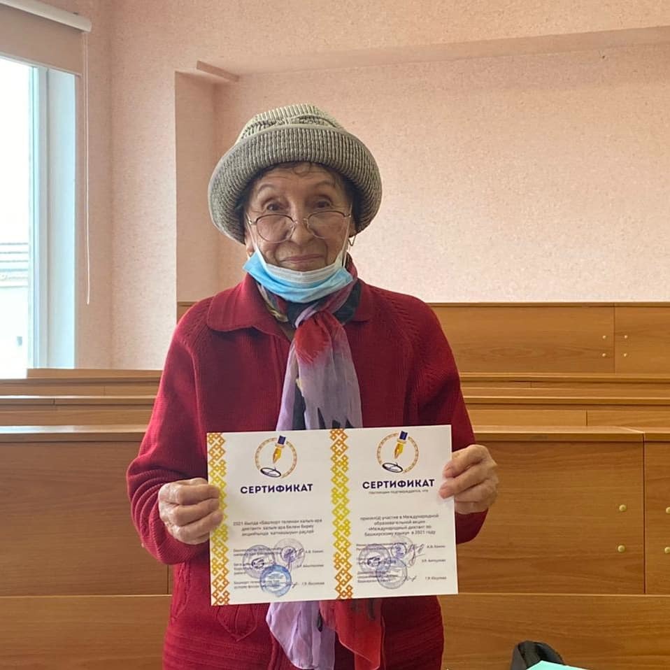 Диктант на нашей площадке писали 113 человек, самым маленьким участникам Азалии К. было 10 лет, а Самире В. - 11. Самому взрослому участнику - Зубаржат Галиевне - 85 лет.