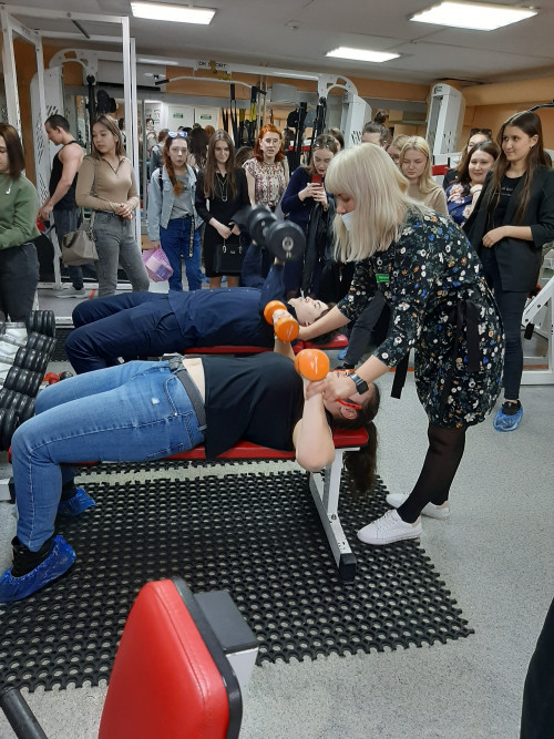 Знакомя студентов с такими понятиями, как « здоровье», « здоровый образ жизни» мы не только пытаемся расширить их словарный запас и кругозор, но и хотим, чтобы в будущей профессии, применяя в обучении здоровьесберегающие технологии, почувствовали и осознали значимость данных понятий, их важность и значение для каждого человека. Поэтому мы должны не только приобщать студентов к здоровому образу жизни, обучать их основам поведения, позволяющим сохранить здоровье, реализовывать программу самосохранения, самоорганизации, саморазвития, но и учить их распространять знания о здоровье на свое окружение . Чтобы закрепить методическую работу была организована экскурсия в фитнес для формирования представлений о полноценном здоровом питании и ведении здорового образа жизни. Фитнес является видом оздоровительной культуры. В тренажерных залах студентам рассказали об эффективности занятий с элементами тренинга. Фитнес является средством поддержания уровня здоровья, физической и умственной работоспособности студентов, но для этого должен правильно питаться, соблюдать режим дня и не заводить вредные привычки