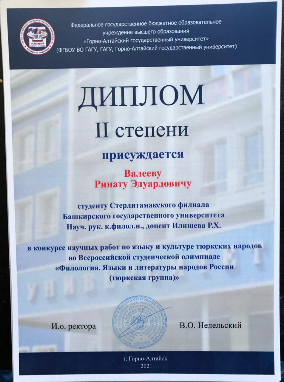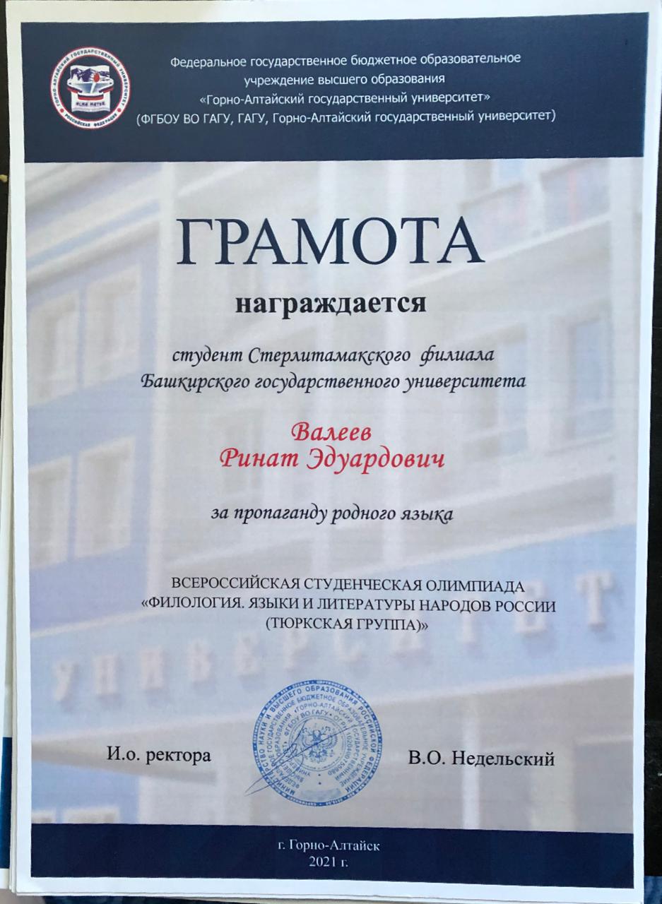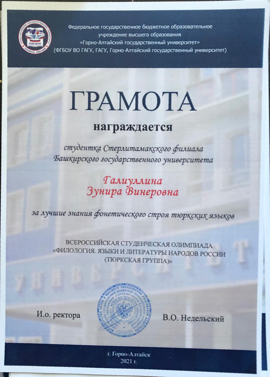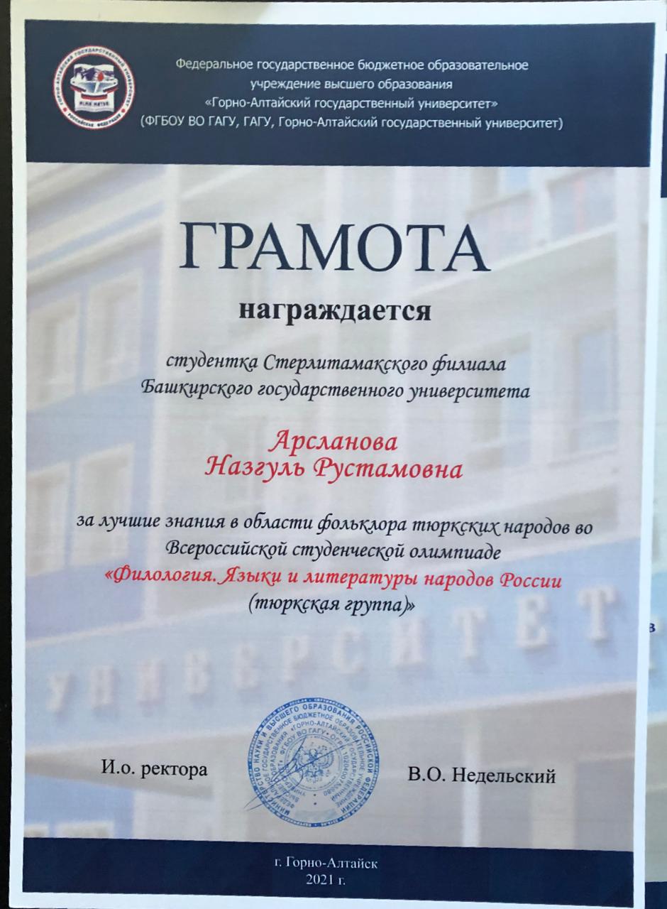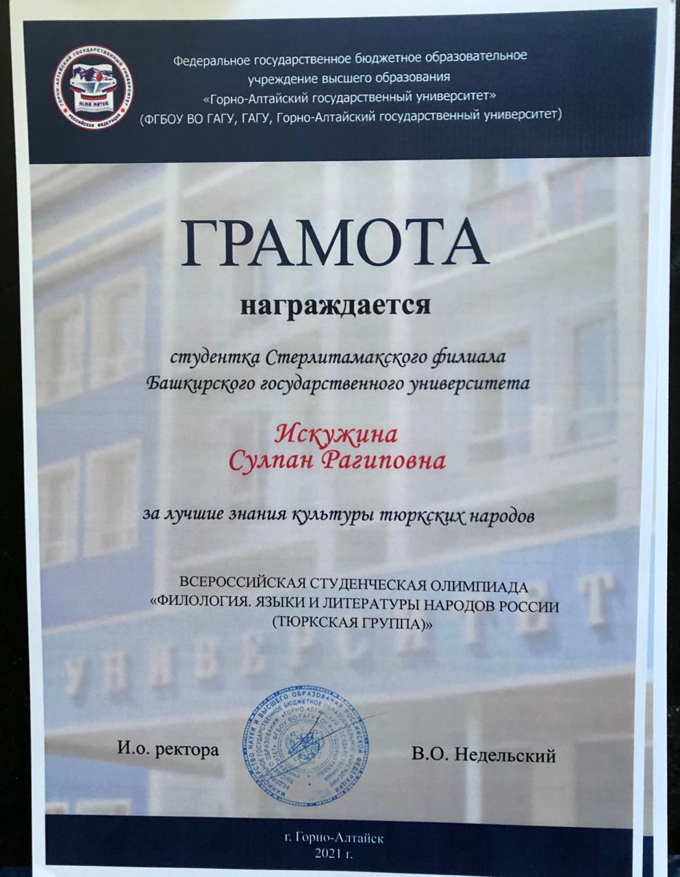 С 10 мая по 15 мая в Горно-Алтайском государственном университете студенты факультета башкирской и тюркской филологи Стерлитамакского филиала БашГУ прошли стажировку. Также они участвовали во Всероссийской студенческой олимпиаде по тюркским языкам и литературам. Данная олимпиада прошла в 16-ый раз, команда нашего факультета участвует с 2009 г. В этом году команда ФБиТФ (Арсланова Назгуль, Валеев Ринат, Галиуллина Зунира, Искужина Сулпан, Мухаметдинова Назгуль, Ягафарова Гульшан) заняла III место.