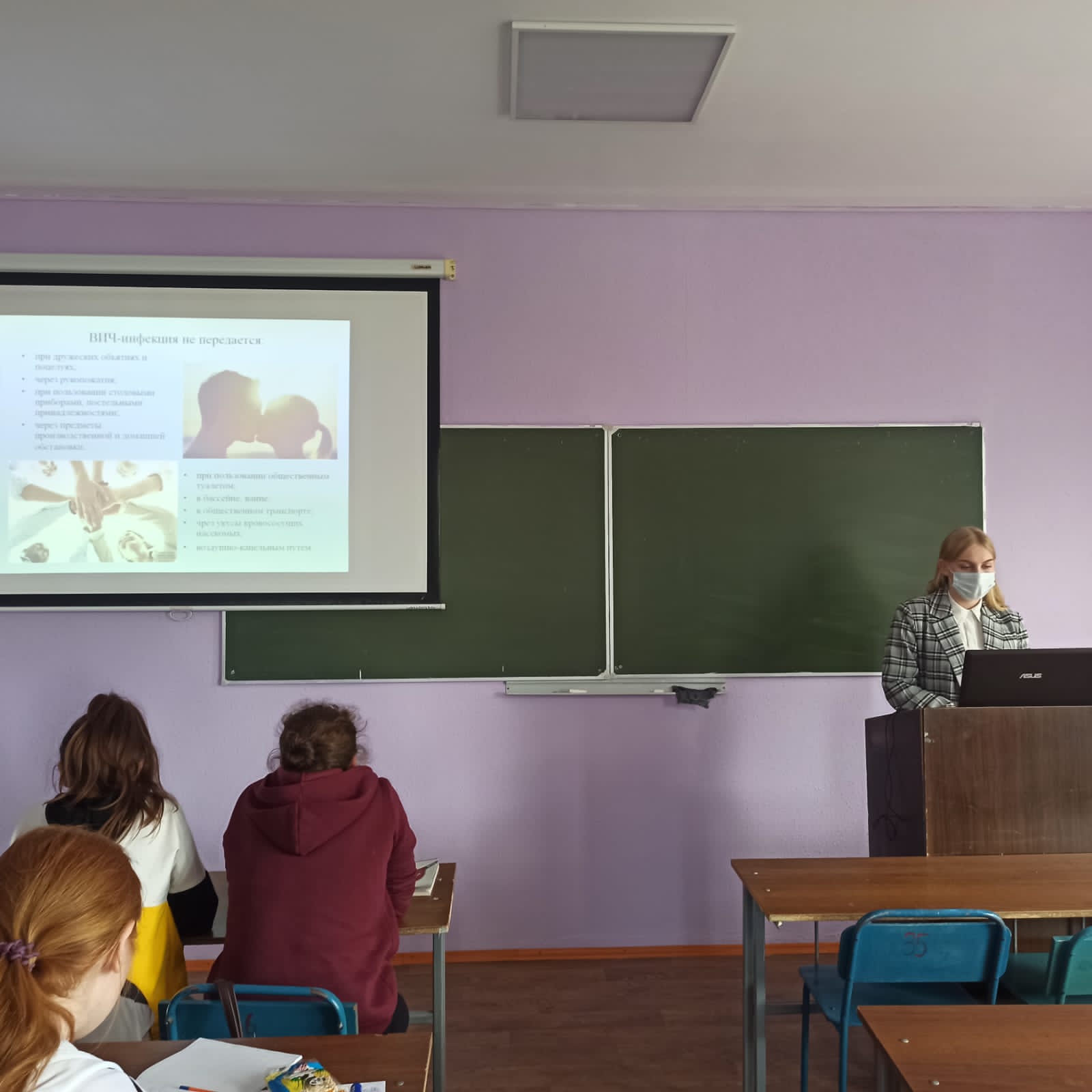 В группе ХИМ11 была проведена воспитательная беседа со студентами первого курса на тему «ВИЧ – смертельная опасность» с целью обеспечить обучающихся необходимой информацией о проблеме СПИДа, сформировать у студентов представление об ответственности за собственное здоровье и пропаганды здорового образа жизни.