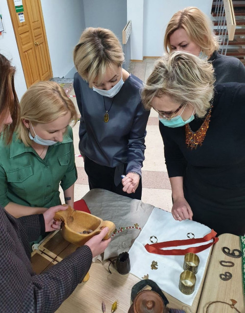 Студенты исторического факультета Андрей Захаров и Максим Сувернев устроили интерактивную экспозицию, в ходе которой поделились с работниками администрации фактами о жизни, ремёслах и военном деле восточных славян IX-XII вв.