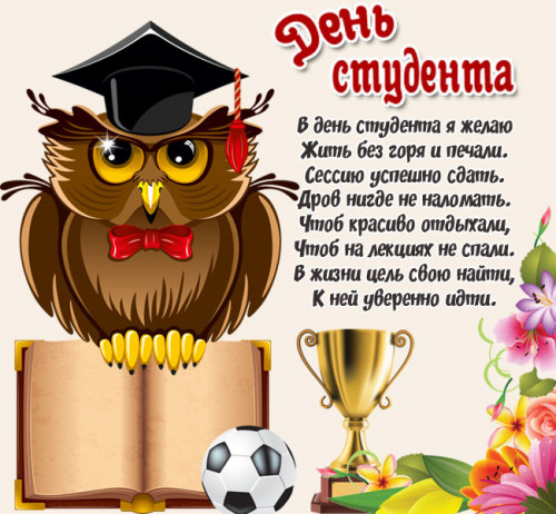 Поздравляем с Татьяниным днем всех студентов! Пускай феерические дни складываются в феерическую жизнь! Успешных вам сессий, верных друзей, полезных знаний, больших перспектив, побольше креативных идей, оптимизма и большого везения!