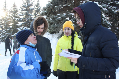 Команды проходили несколько тематических станций и получали оценки в импровизированную зачетную книжку. Ребята выполняли задания на синхронность, собирали на скорость пирамидку, катались на огромных лыжах и ледянке, делали оригинальные фотографии, перетягивали канат, отвечали на вопросы о вузе. В завершение квеста студентам необходимо было ответить на контрольный вопрос ведущего. За правильный ответ участники получали разрешение взобраться на гору, где стояло чучело. Команда, которая первая добралась до символа сессии и надела на него корону, считалась победителем в этом задании.